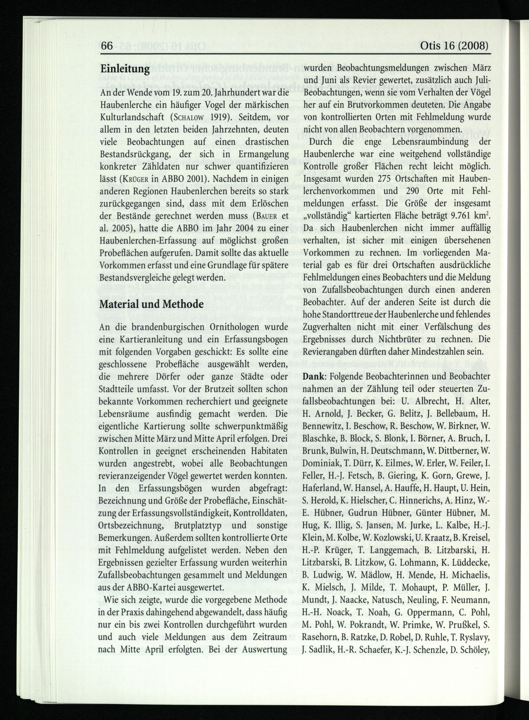 Mädlow, Wolfgang/ Rudolph, Bodo, Das Brutvorkommen der Haubenlerche (Galerida cristata)...