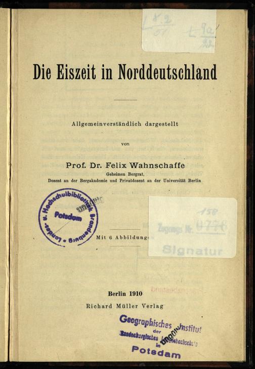 Die Eiszeit in Norddeutschland / allgemeinverständlich dargestellt: Felix Wahnschaffe