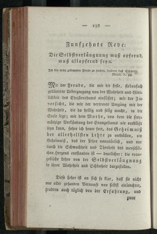 Funfzehnte Rede: Die Selbstverläugnung muß opfernd, muß allopfernd seyn.