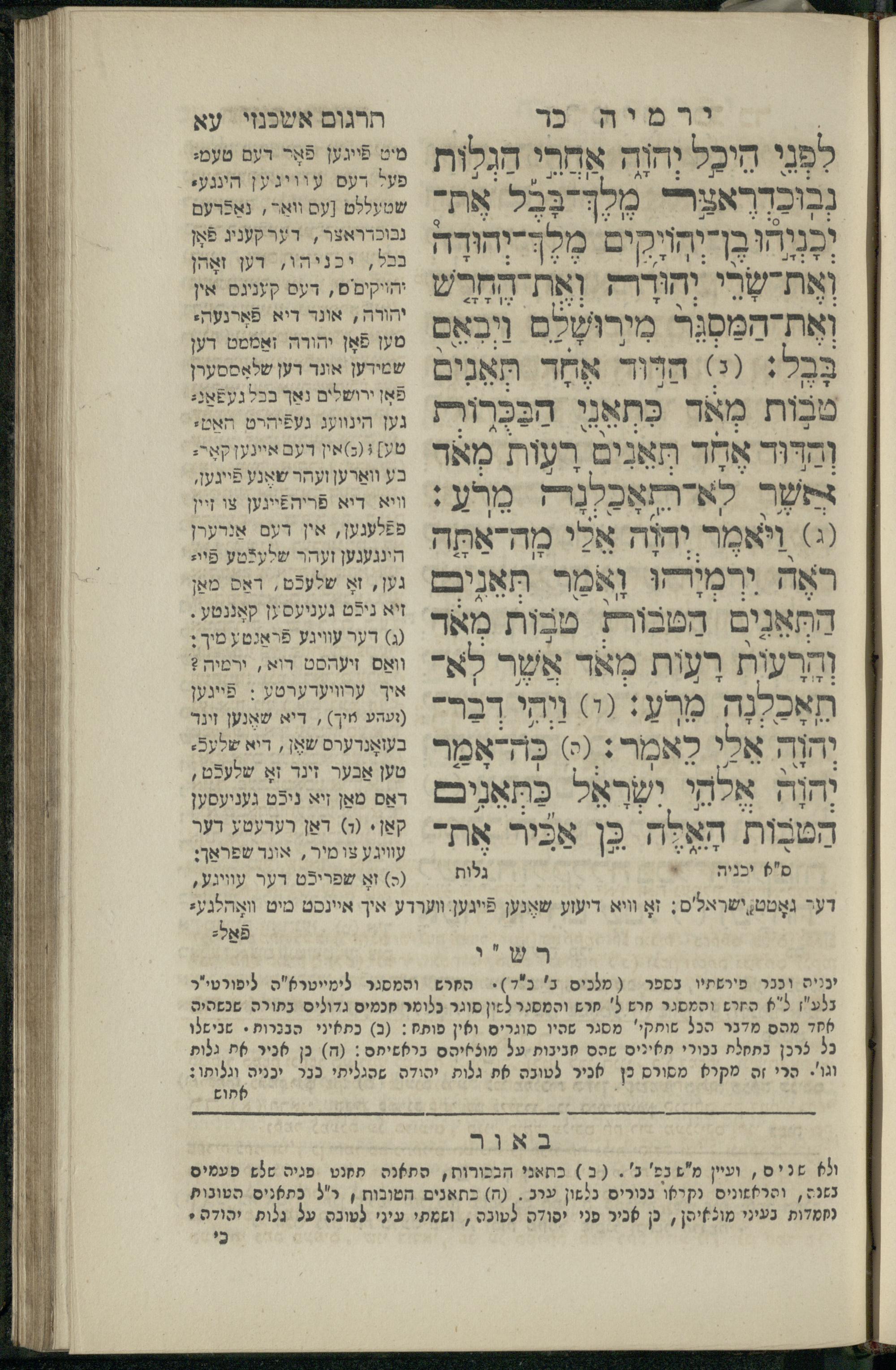 11 (1836) Sefer Yirmeyah / meturgam u-mevoʾar me-ḥadash me-et ha-Rav m.h. Shelomoh ben mo.h. Daṿid Zakhs (a.b.d. di-ḳ.ḳ. Likhṭenshṭadṭ u-gelilot Elenbogen ṿe-Zaʾats be-medinat Behmen) ṿe-nilṿah elaṿ Perush Rashi ṿe-haʿtaḳah u-veʾur kol milot be-laʿaz me-et ha-madpis Mosheh ha-Leṿi Landa11 (1836) ספר ירמיה / מתורגם ומבואר מחדש מאת הרב מ"ה שלמה בן מו"ה דוד זאכס (אב"ד דק"ק ליכטענשטאדט וגלילות עלנבאגען וזאאץ במדינת בעהמען) ונלוה אליו פירוש רש''י והעתקה ובאור כל מלות בלע''ז מאת המדפיס משה הלוי לנדא