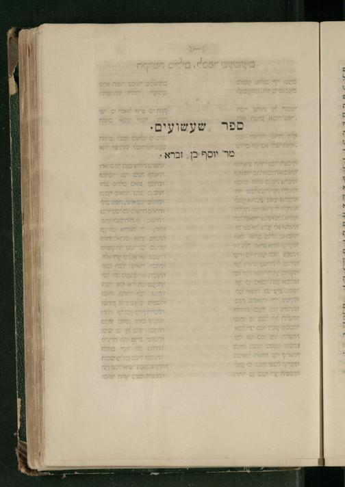 Ḥoveret Yen Levanon : sheloshah sefarim niftaḥim : perush ʿal masekhet Rosh ha-shanah le-ha-Rambam, S. Zekhut adam le-R. Daṿid mi-Roḳa Marṭika, S. Saʿashuʿim le-R. Yosef Zabara / ... yatsʾu rishonah la-or bi-defus ʿal yede ṿe-ʿal hotsaʾot Yeḥiʾel Brilחוברת יין לבנון : שלשה ספרים נפתחים : פירוש על מסכת ראש השנה להרמב״ם, ס׳ זכות אדם לר׳ דוד מרוקא מרטיקא, ס׳ סעשועים לר׳ יוסף זברא / ... יצאו ראשונה לאור בדפוס על ידי ועל הוצאות יחיאל בריל