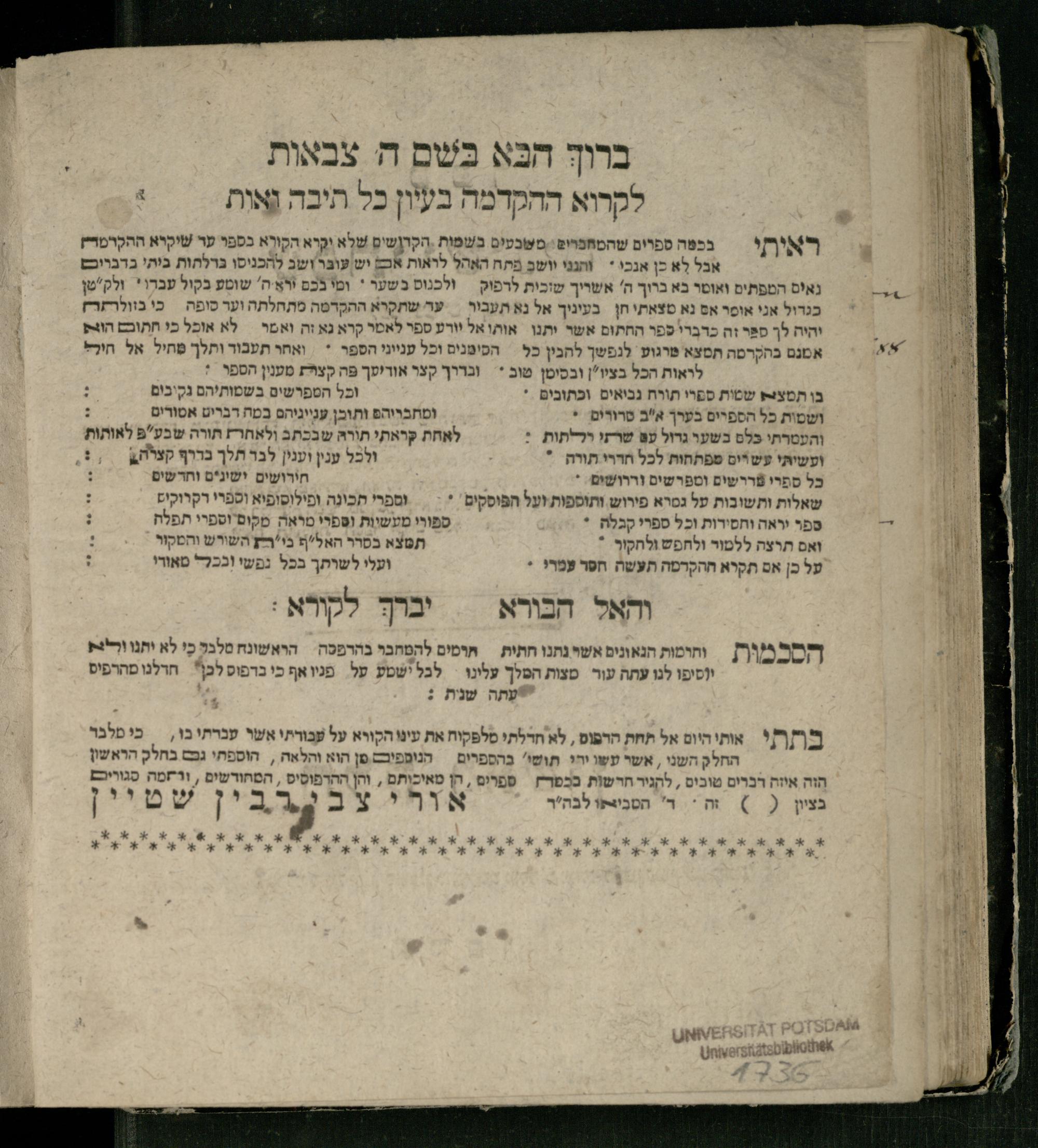 Ḥeleḳ rishon (1806)lifne neʿarim ṿe-ḳetanim asher ṭaraḥ yaga ṿe-asaf Shabtai Meshorer Bas mi-PragḤeleḳ rishon (1806)לפני נערים וקטנים אשר טרח יגע ואסף שבתי משורר בס מפראג