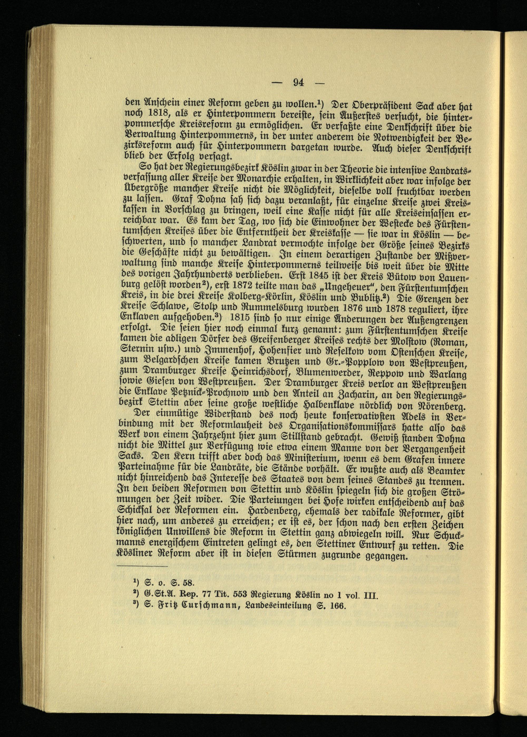 8. Kapitel. Die Reform im Regierungsbezirk Stettin.