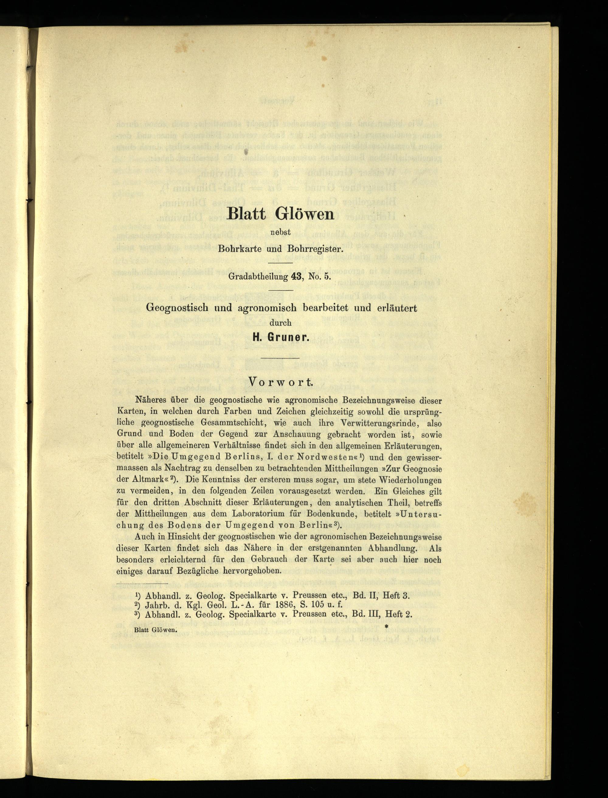 Grad-Abtheilung 43, Blatt 5 [Neue Nr. 3038] (1895) Glöwen : geologische Karte / geognostisch und agronomisch bearb. durch H. Gruner 1889