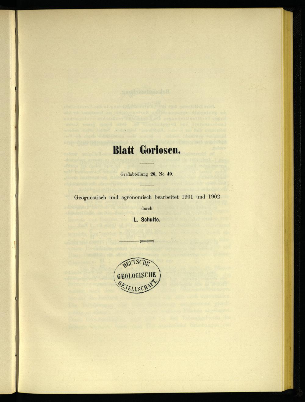 Grad-Abtheilung 26, Blatt 49 [Neue Nr. 2834] (1905) Gorlosen / geognostisch und agonomisch bearb. durch L. Schulte 1901/1902