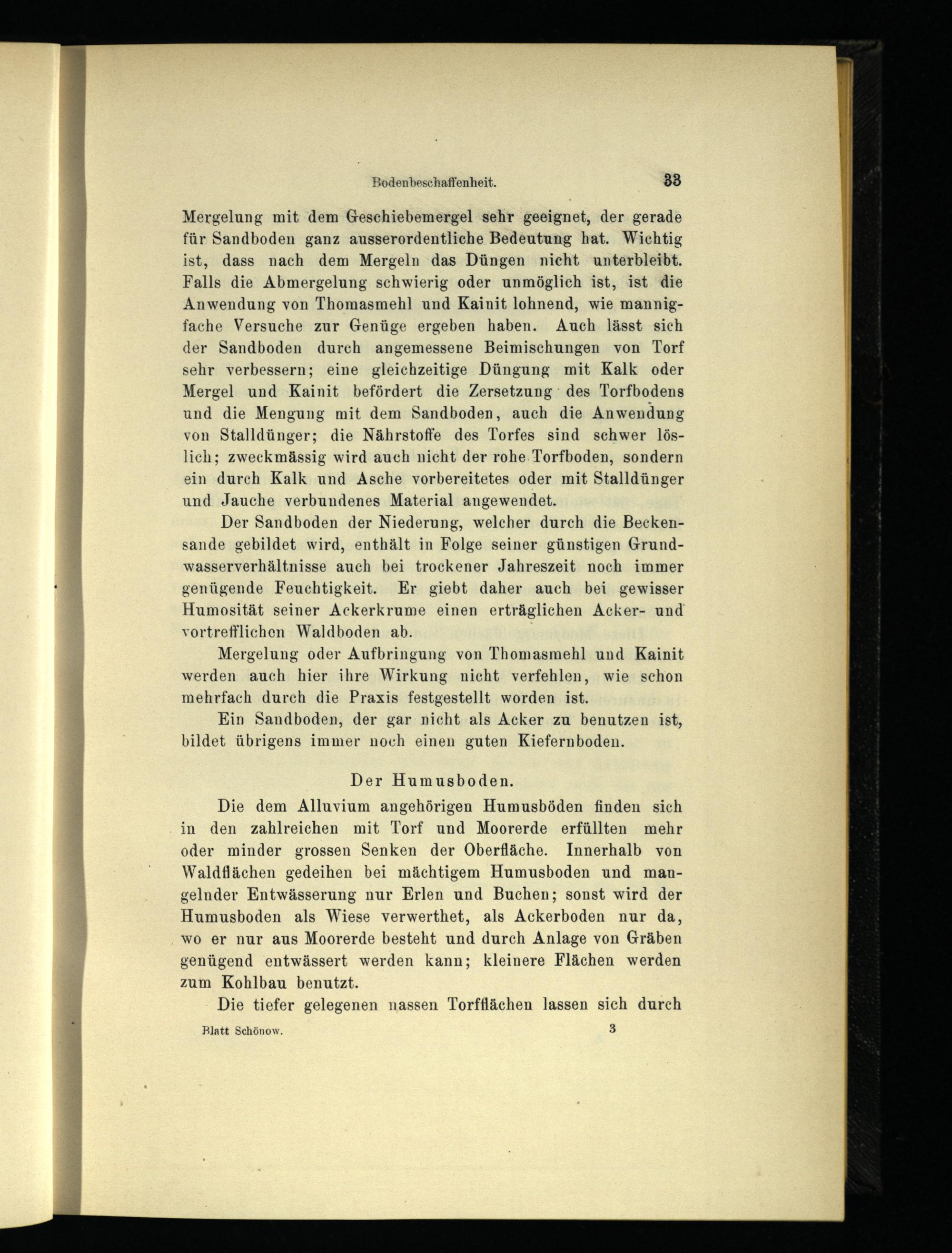 Mergelung oder Aufbringung von Thomasmehl und Kainit werden auch hier ihre Wirkung nicht verfehlen, wie schon mehrfach durch die Praxis festgestellt worden ist.