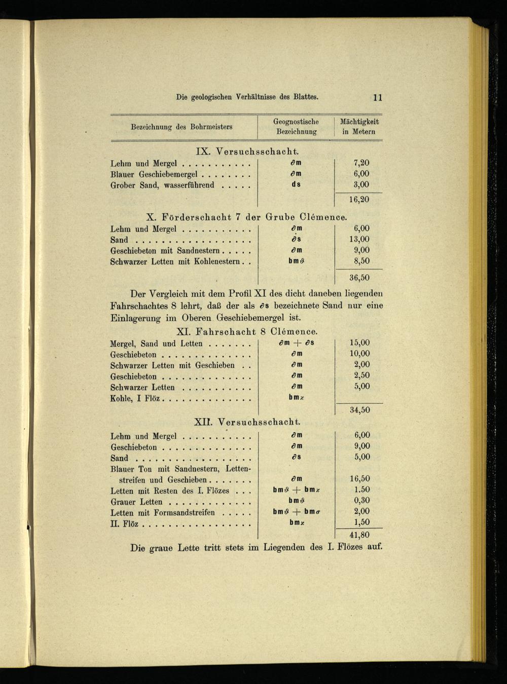 Der Vergleich mit dem Profil XI des dicht daneben liegenden Fahrschachtes 8 lehrt, daß der als ds bezeichnete Sand nur eine Einlagerung im Oberen Geschiebemergel ist.