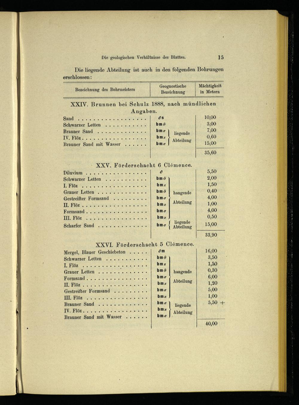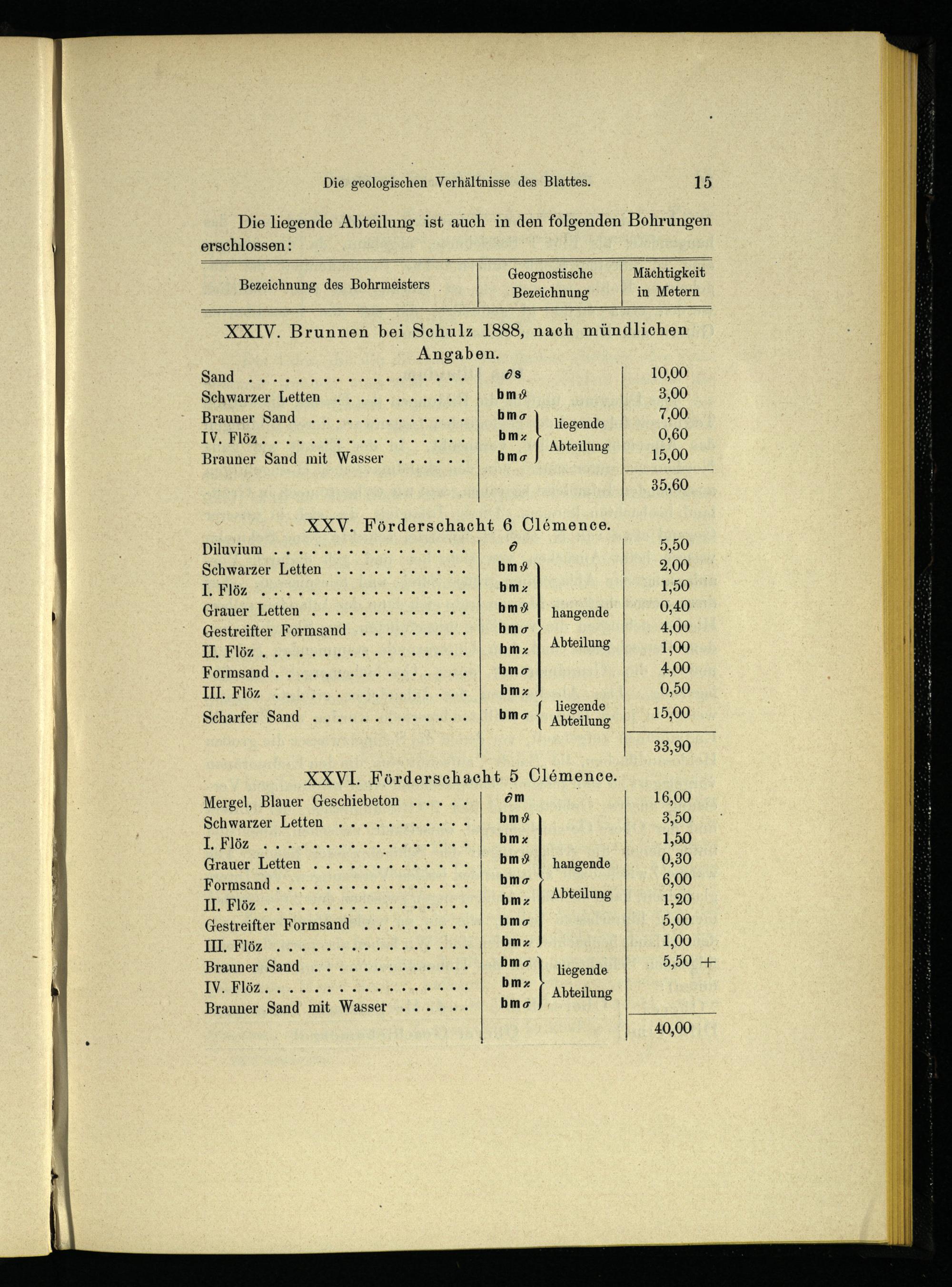 Geognostische Mächtigkeit Bezeichnung in Metern