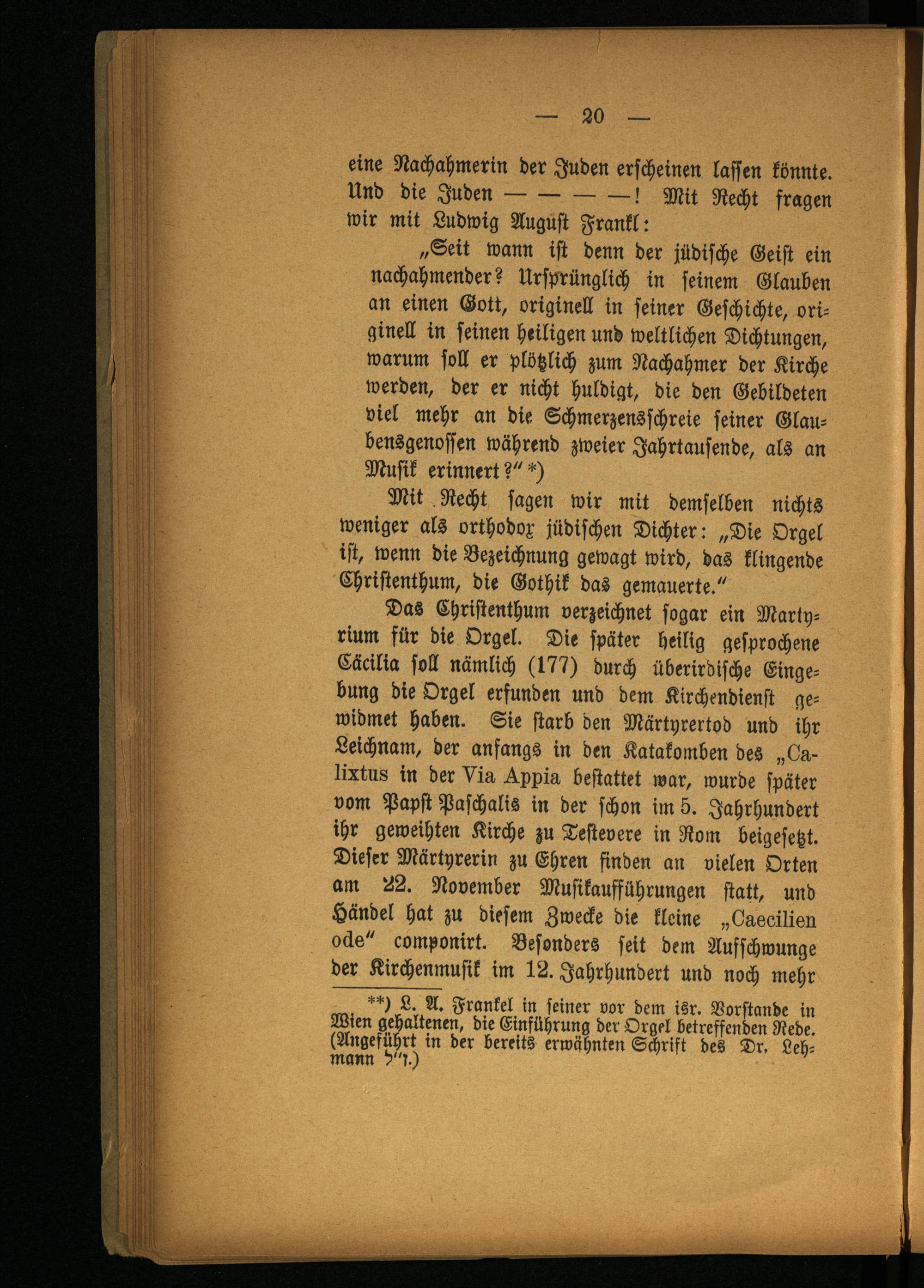 **) L. A. Frankel in seiner vor dem isr. Vorstande in Wien gehaltenen, die Einführung der Orgel betreffenden Rede. (Angeführt in der bereits erwähnten Schrift des Dr. Lehmann d"t.)