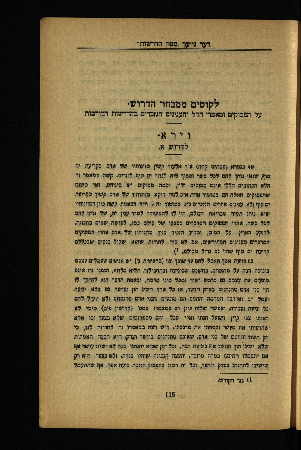 לקוטים ממבחר הדרושי על הפטוקים ומאמרי חז"ל והענינים הנזכרים בהדרשות הקודמות