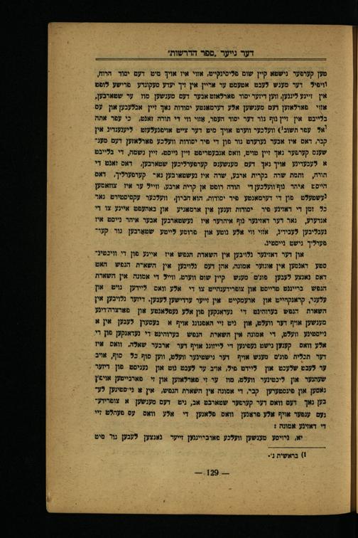 און דער דאזינער גלויבען אין השארת הנפש איז איינע פון די וויכטיגסטע דאנמען אין אונזער אמונה, אהן דעם נלוינען אין השאית הנפש האט דאס נאנעע לענען פונ'ם מענש קיין שום ווערט, ווייל די אמונה אין השארת הנש ברייננט טרייפט און צופרידענהייט צו די אלע וואס ליידען נויט און עלענר, קראנקחייט און- אועמקייט אין זייער עררישען לעכען. דיזער גלויבען אין השאות הנפש בֿערוהינט די נעראנקען פון אלע געפלאנטע פאַרצרה'דינע מענשען אויף דער וועלט, און ניט זי האפנונג אויף א נעסערן לעכען אין א נייסטינע וועלט, די אמונה אין השארת הנמשׁ כערוהינט די געדאנקען פון רי. אלע וואס קענען נישט נעפינען די לייזונג אויף דער אוכער שאלה. וואס איז דער תכלית פונ'ם מענש אויף דער נישטינער וועלט, ווען סוף כל סוף, אוב ער לעכט שלעכט ליירט פיל, אוב ער לענט נוט און געניסט פון ריזער שעהנער און ליכטינער. וועלט, מוז ער זי פֿארלאזען און זי= פארנייטען אויפ'ן נאטען און קבר, די אמונה אין השארת הנפש, אין א נייסטינען לע" בען נאך דעס וואס דער קערמער שטארכט אב, ניט דעס מענשען= א צופרירע" נעם ענפער אויף אלע פואנען וואס פלאנען די אלע וואס עס פעהלט זי די דאזיגע אמונה 1