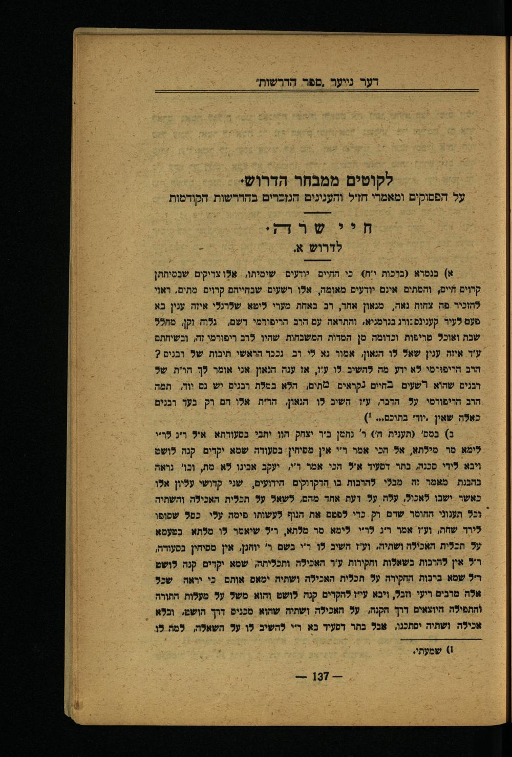 לקוטים ממבֿחר הדרושי על הפסוקים ומאמרי חזיל והענינים הנזכרים בחדרשות הקודמות חיי שיר היהי לדרוש א.