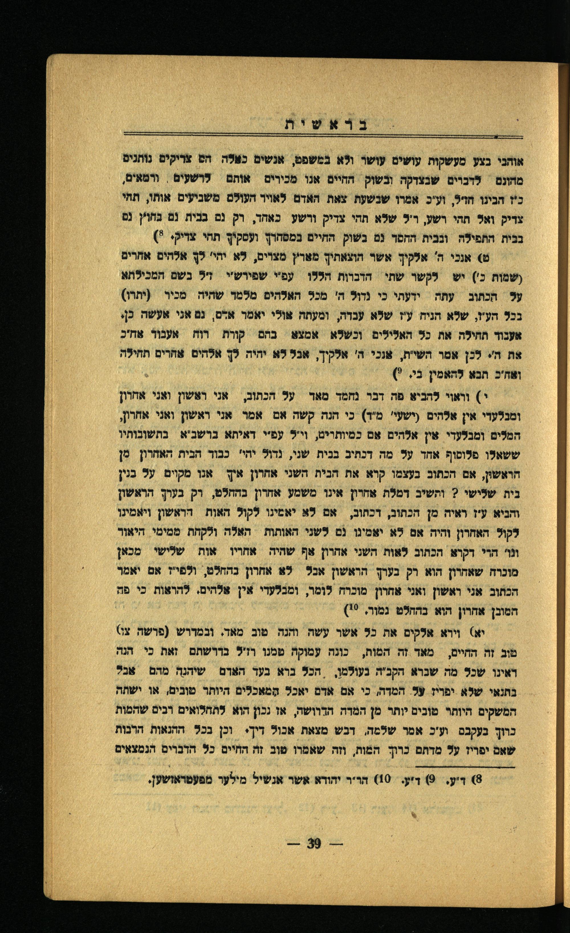 ט) אנכי ה' אלקיך אשר הועאחיך מאר'ץ מצוים, לא יהי' לךָ אלהים אחרים (שמות כ') יש לקשר שתי הדכרות הללן עפיי שפירש" זיל כשם המכילתא על הכתוב עתה ידעתי כי נרול ה' מכל האלהים מלמר שהיה מכיר(יתרו) בכל הע"ז, שלא הניח ע"יז שלא עכרה, ומעתה אולי יאמר אס, גנ אני אעשה כן. אענור החילה את כל האלילים ונשלא אמעא כהם קוות ווה אענול אח"כ את ה'. לכן אמו השייח, אנכי ה' אלקיך, אנל לא יהיה לךְ אלהים אהרים תהילה ואה'כ חבא להאמין בֿי,?):