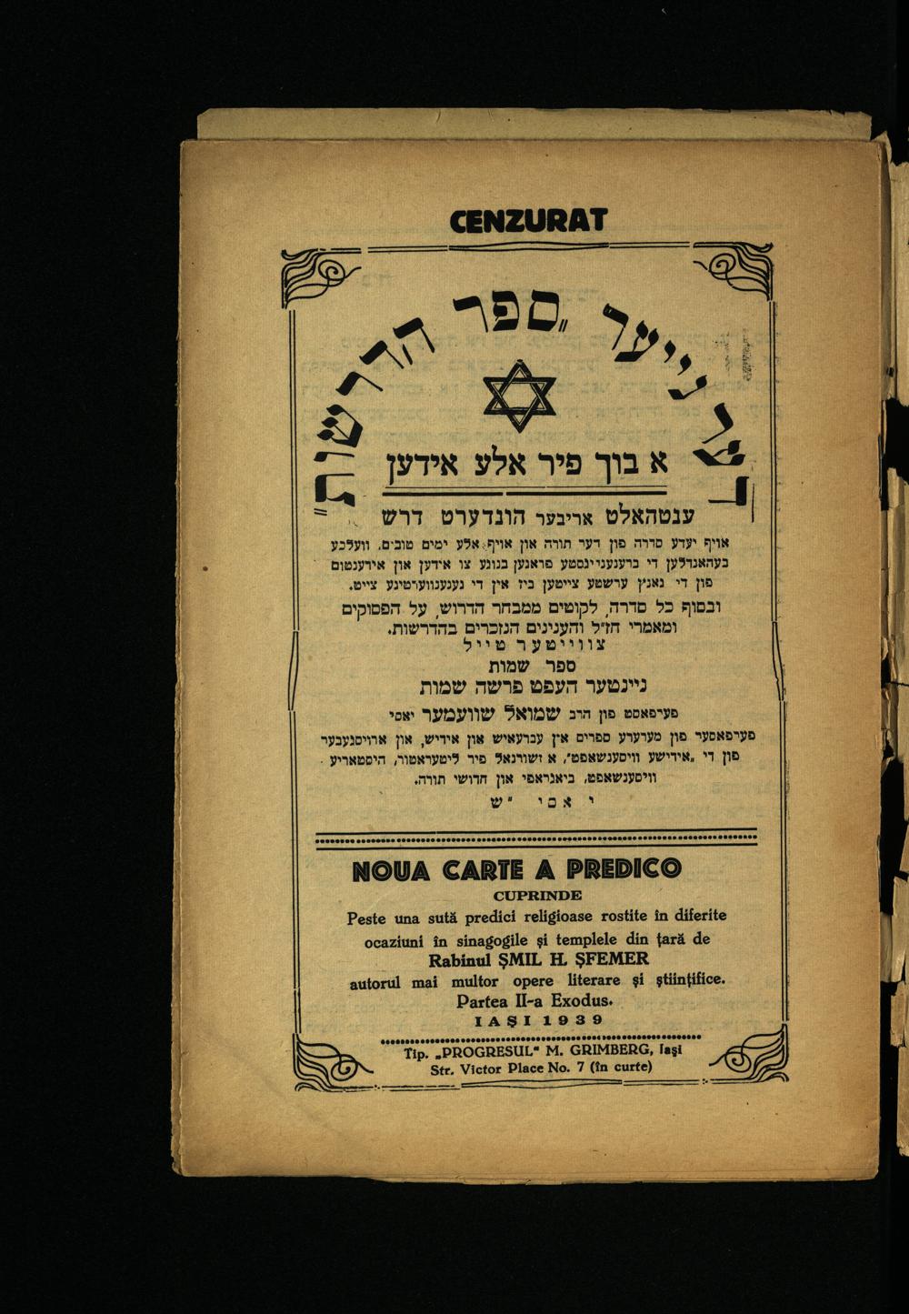 Peste una sută predici religioase rostite în diferite ocaziuni în sinagogile şi templele din țară de Rabinul ŞMIL H. ŞFEMER