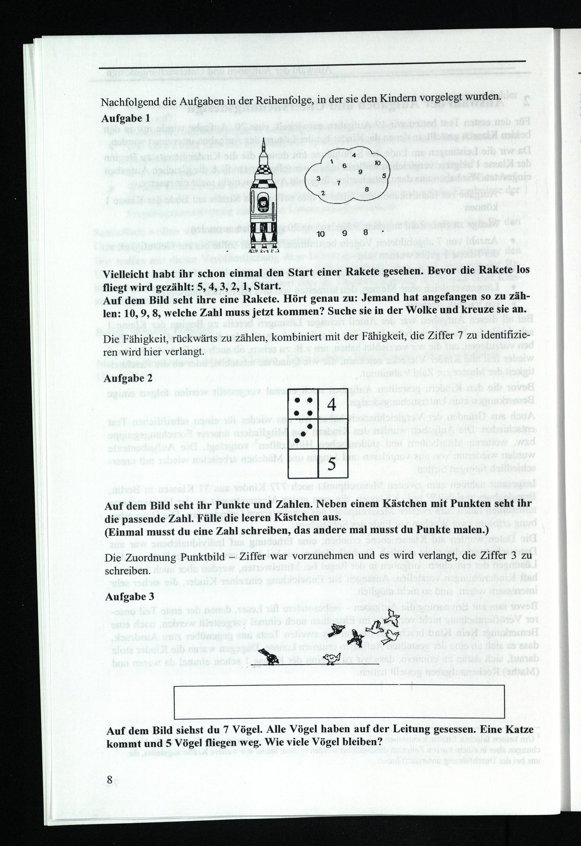 Nachfolgend die Aufgaben in der Reihenfolge, in der sie den Kindern vorgelegt wurden. Aufgabe 1