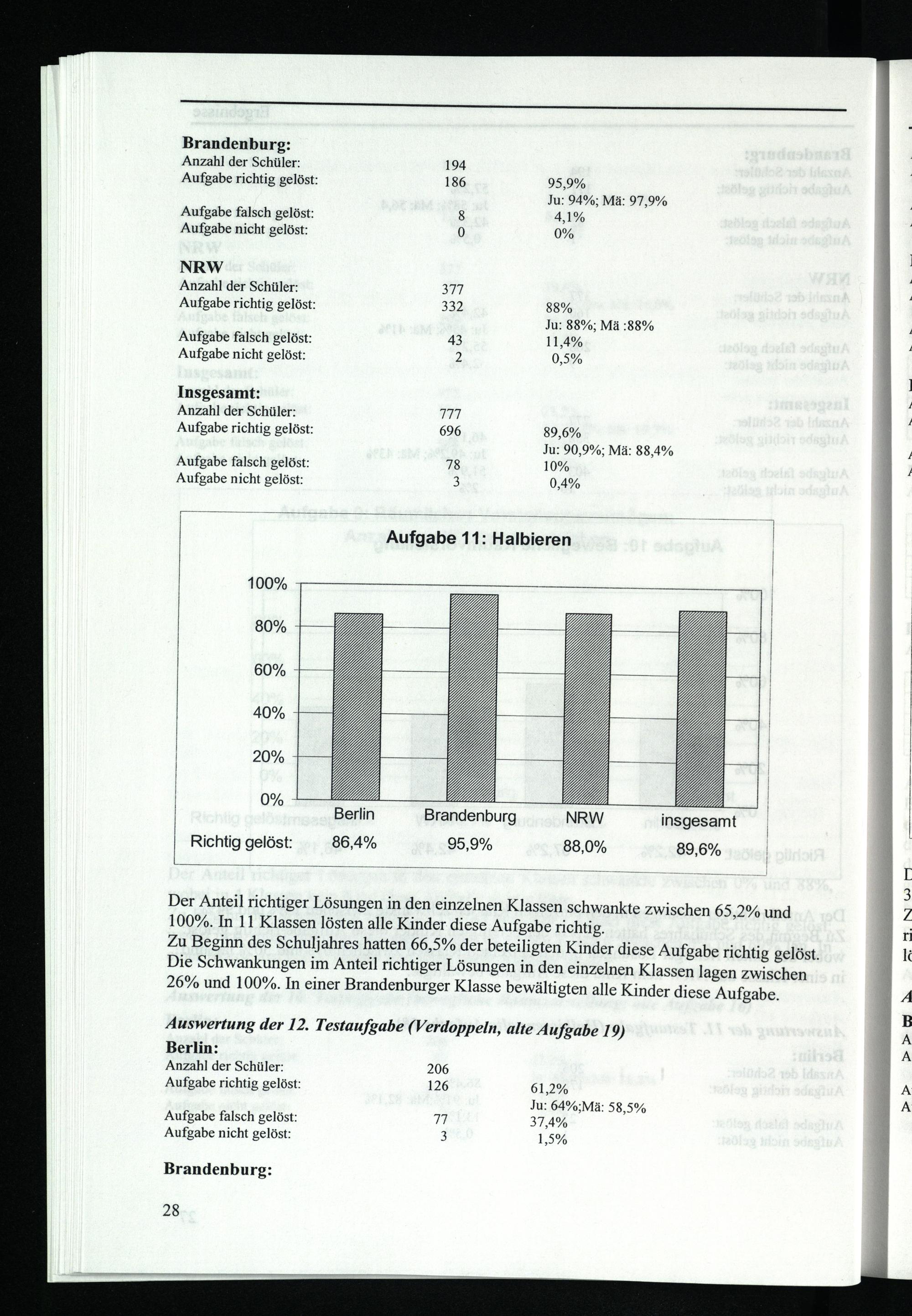 Die Schwankungen im Anteil richtiger Lösungen in den einzelnen Klassen lagen zwischen 26% und 100%. In einer Brandenburger Klasse bewältigten alle Kinder diese Aufgabe.