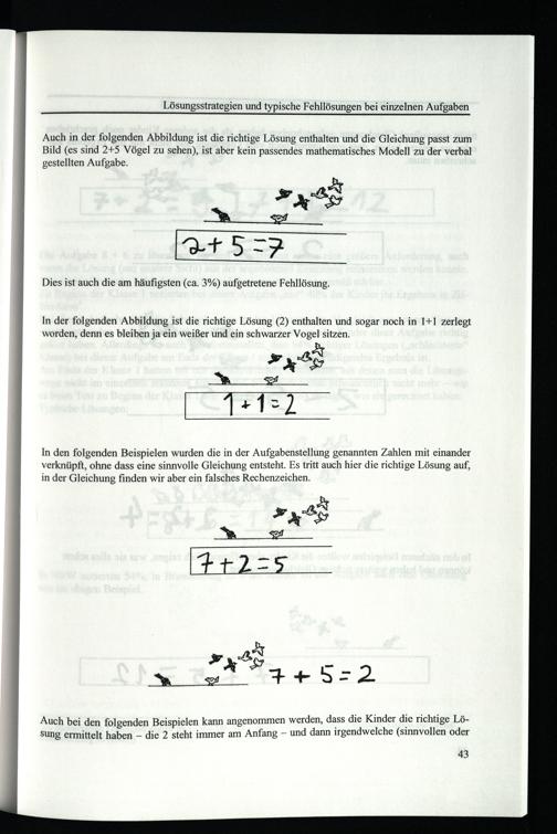 Auch in der folgenden Abbildung ist die richtige Lösung enthalten und die Gleichung passt zum Bild(es sind 2+5 Vögel zu sehen), ist aber kein passendes mathematisches Modell zu der verbal