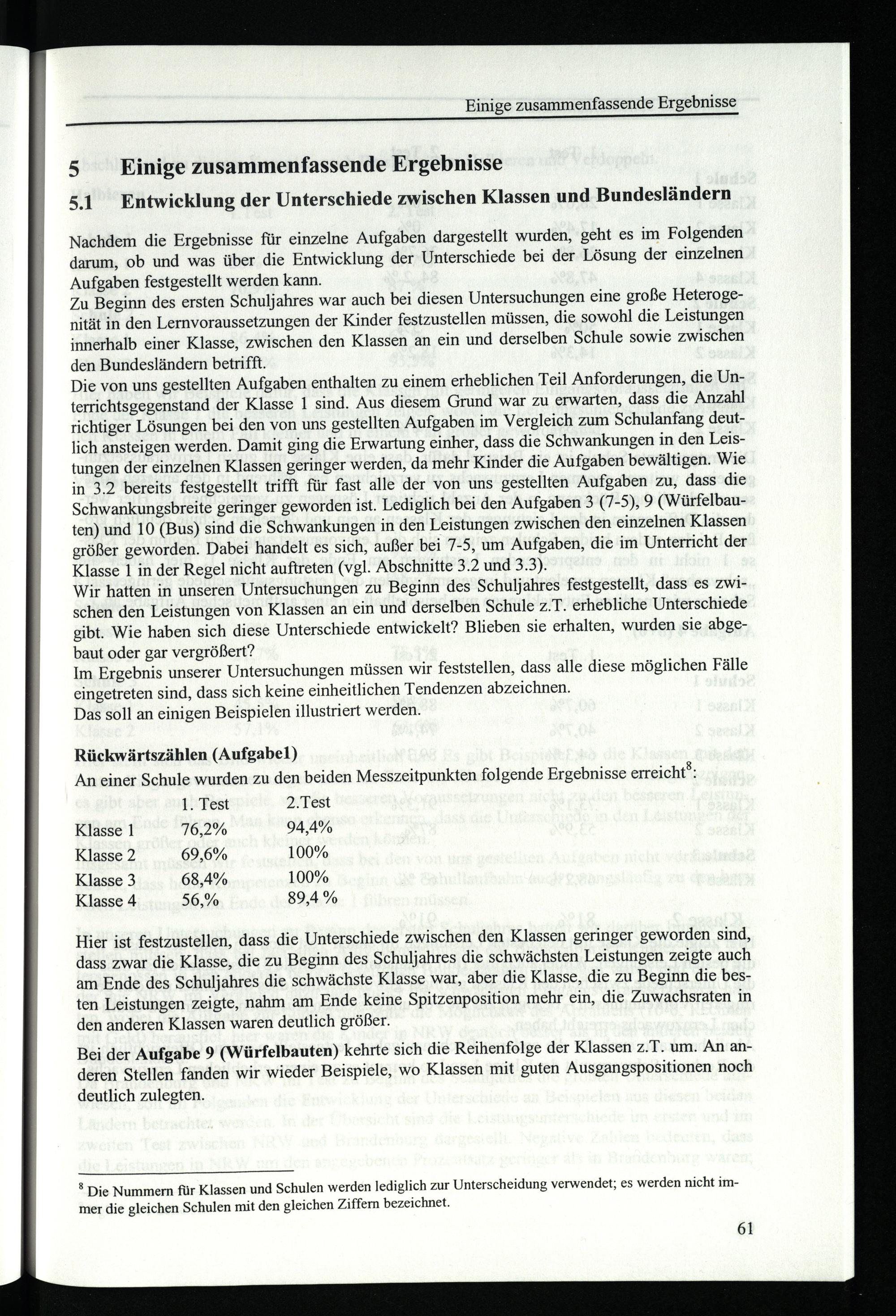 Zu Beginn des ersten Schuljahres war auch bei diesen Untersuchungen eine große Heterogenität in den Lernvoraussetzungen der Kinder festzustellen müssen, die sowohl die Leistungen innerhalb einer Klasse, zwischen den Klassen an ein und derselben Schule sowie zwischen den Bundesländern betrifft.