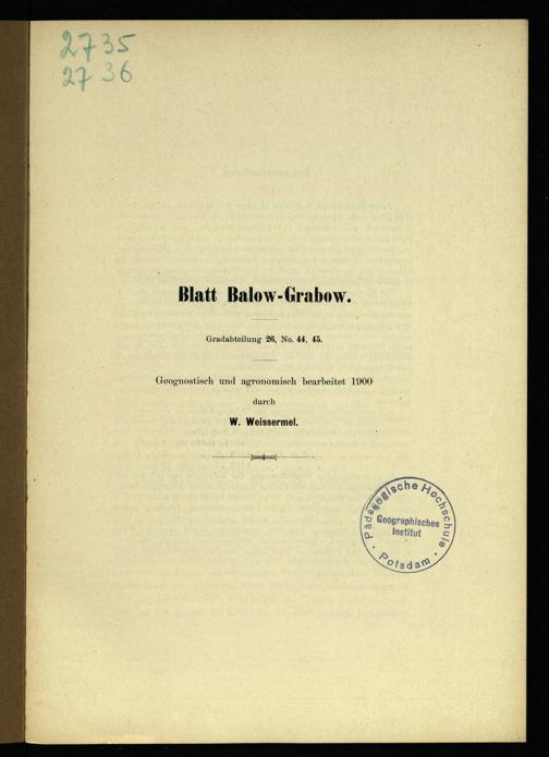Blatt Balow-Grabow. Gradabteilung' 26, No. 44, 45. Geognostisch und agronomisch bearbeitet 1900 durch W. Weissermel.
