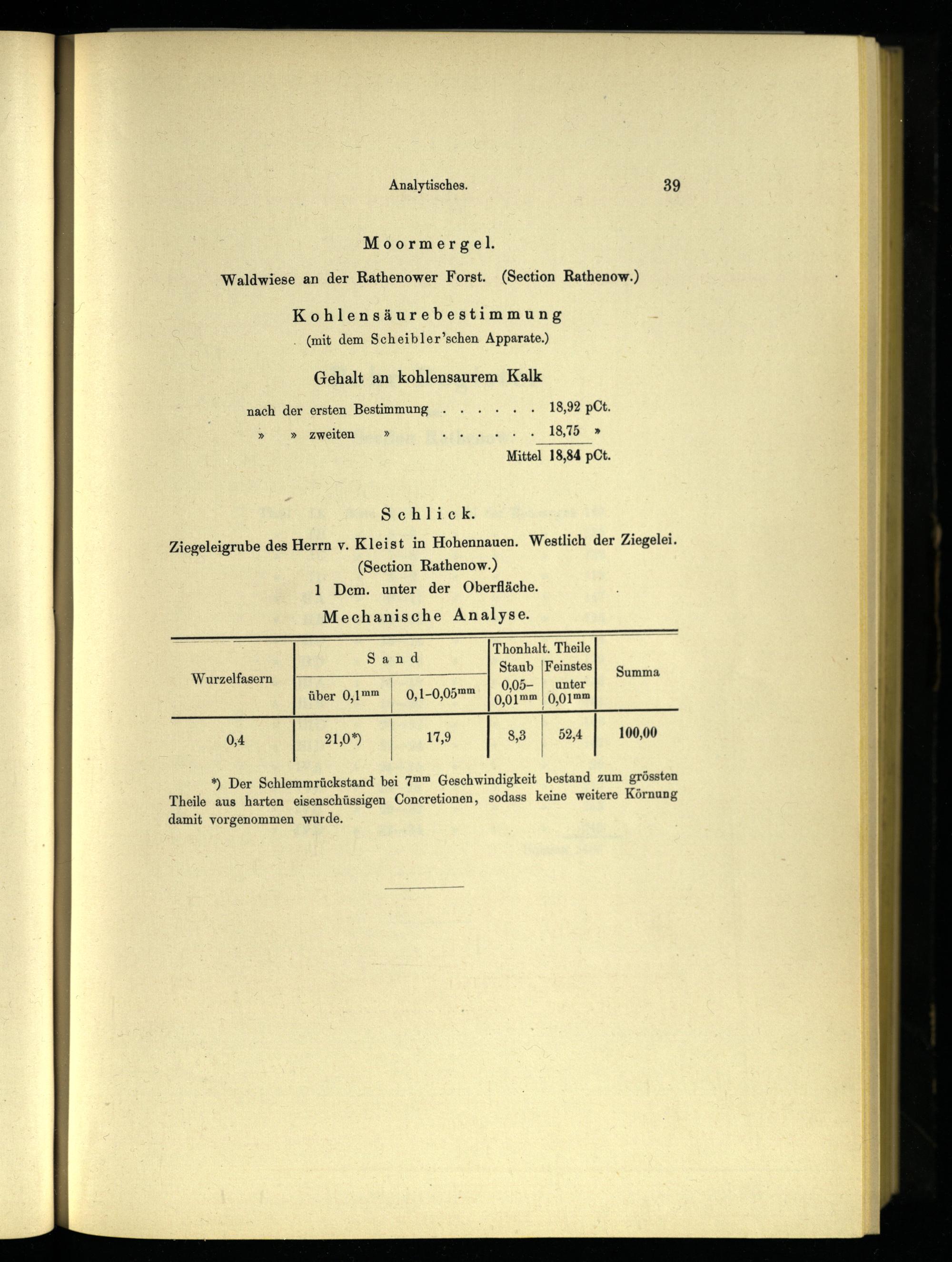 *) Der Schlemmrückstand bei 7 mm Geschwindigkeit bestand zum grössten Theile aus harten eisenschüssigen Concretionen, sodass keine weitere Körnung damit vorgenommen wurde.