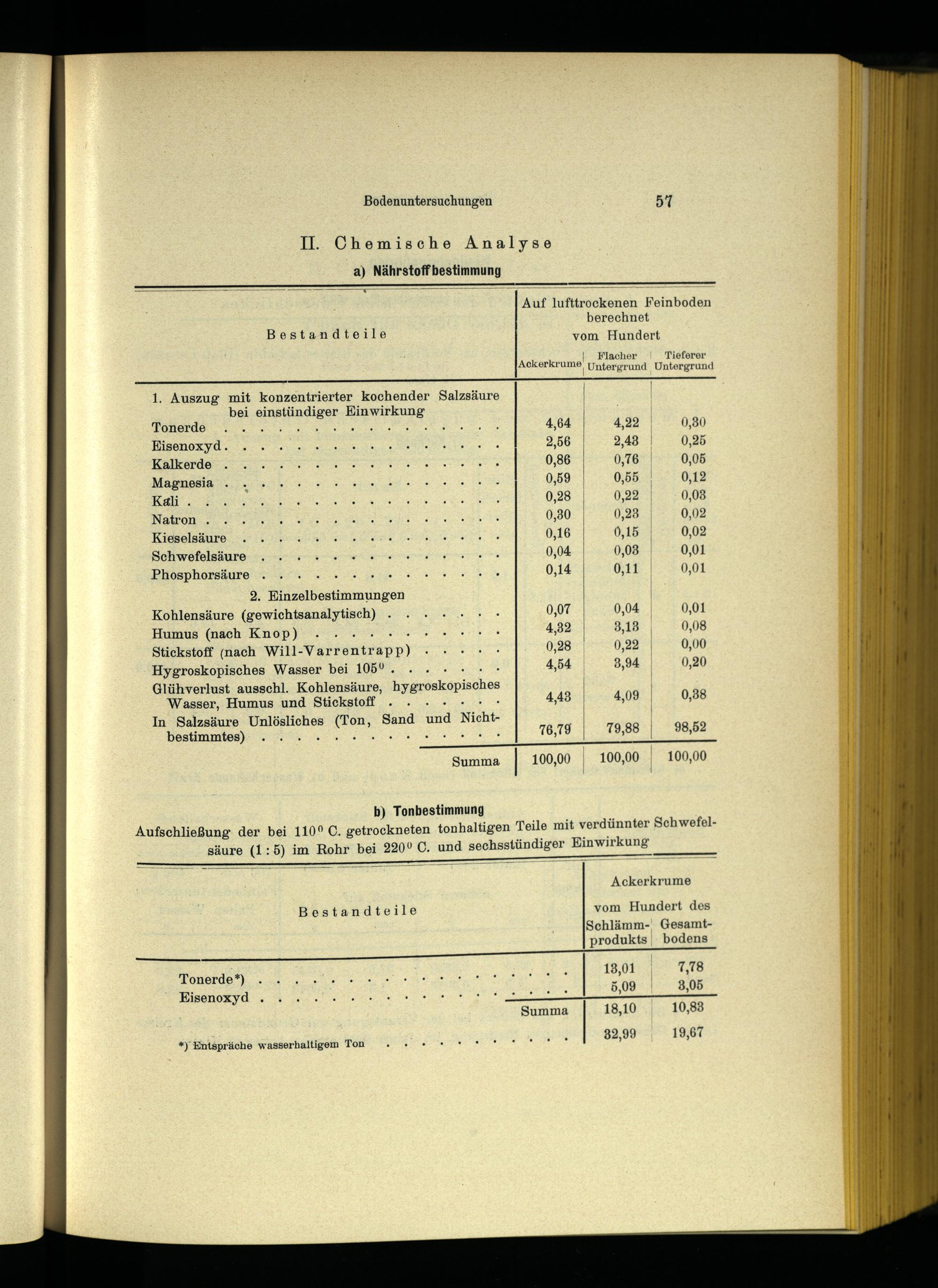 Aufschließung der bei 110° C. getrockneten tonhaltigen Teile mit verdünnter Schwefelsäure (1 : 5) im Rohr bei 220° C. und sechsstündiger Einwirkung