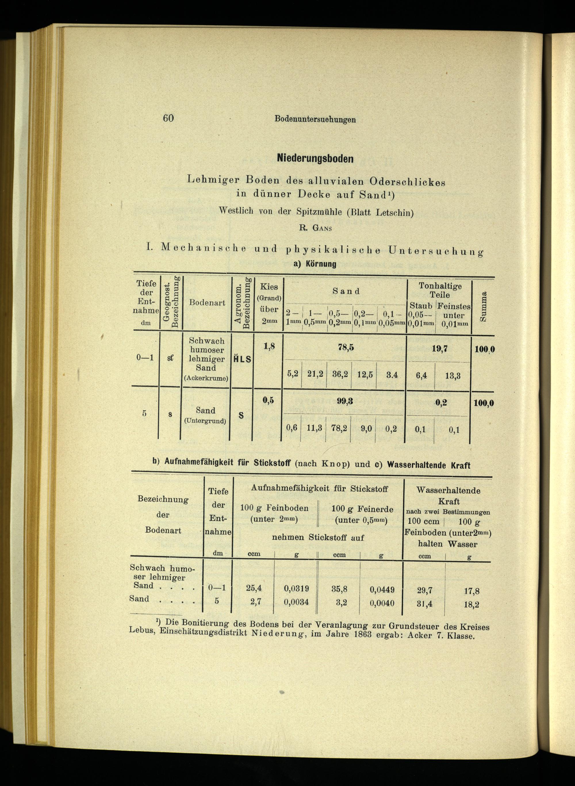 b) Aufnahmefähigkeit für Stickstoff (nach Knop) und c) Wasserhaltende Kraft