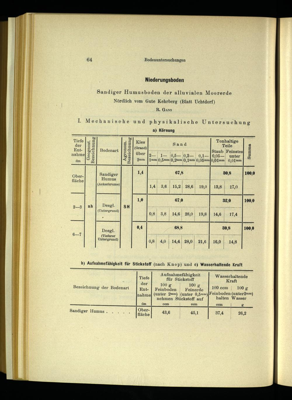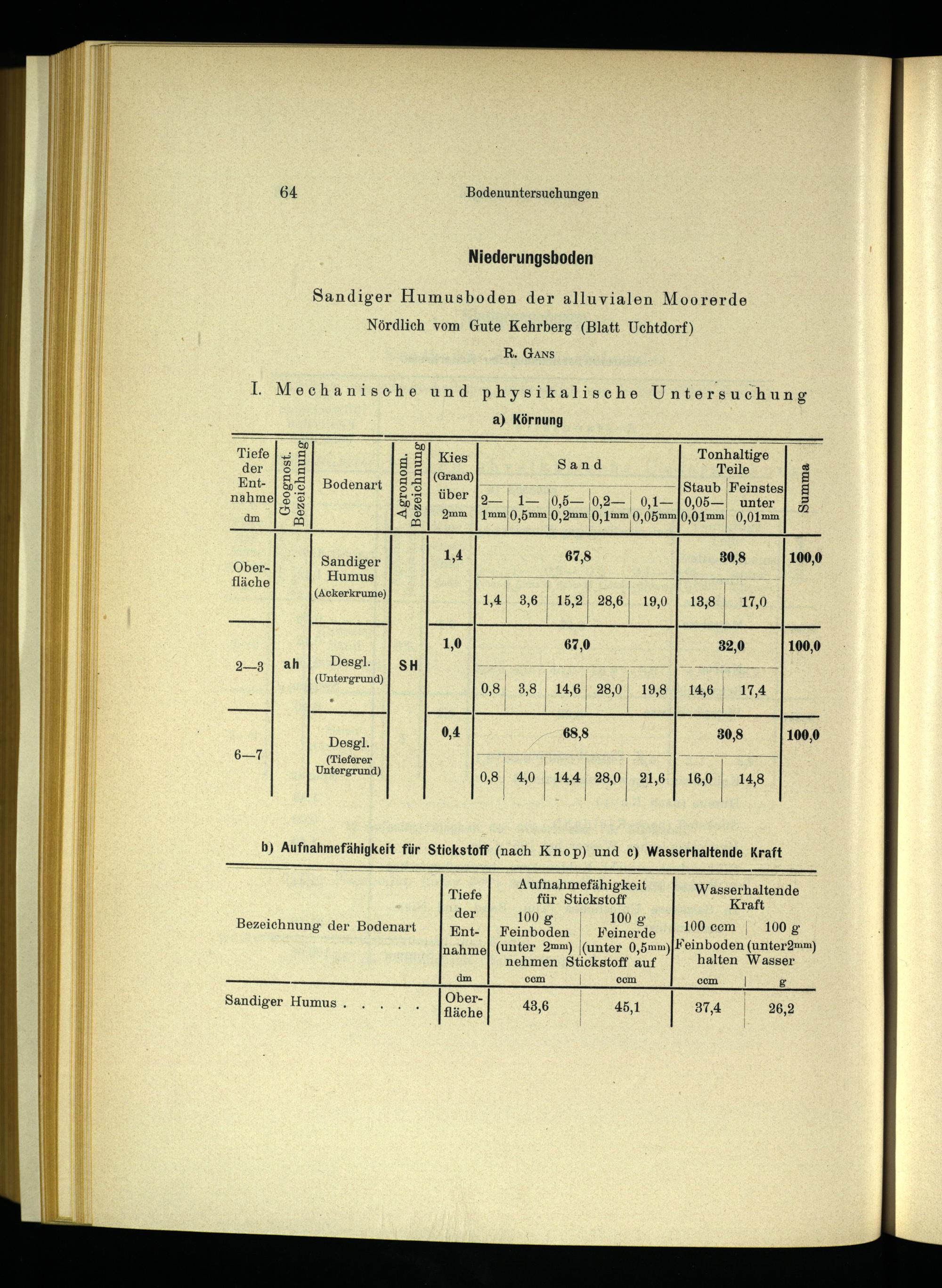 b) Aufnahmefähigkeit für Stickstoff (nach Knop) und c) Wasserhaltende Kraft