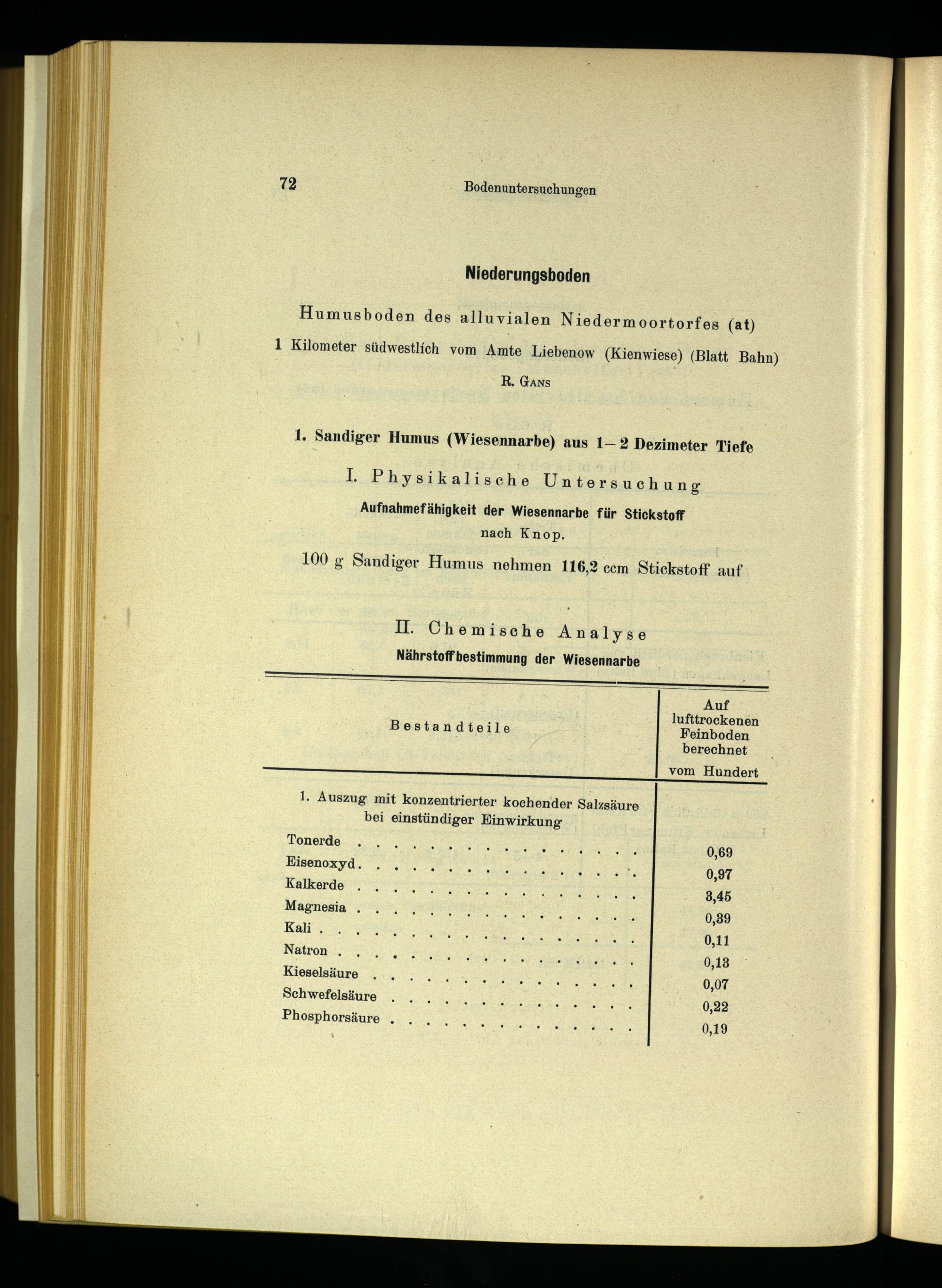 100 g Sandiger Humus nehmen 116,2 ccm Stickstoff auf