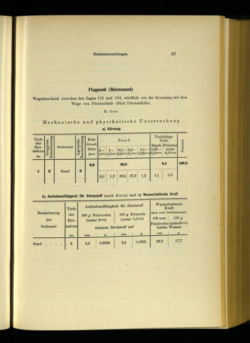 b) Aufnahmefähigkeit für Stickstoff (nach Knop) und c) Wasserhaltende Kraft