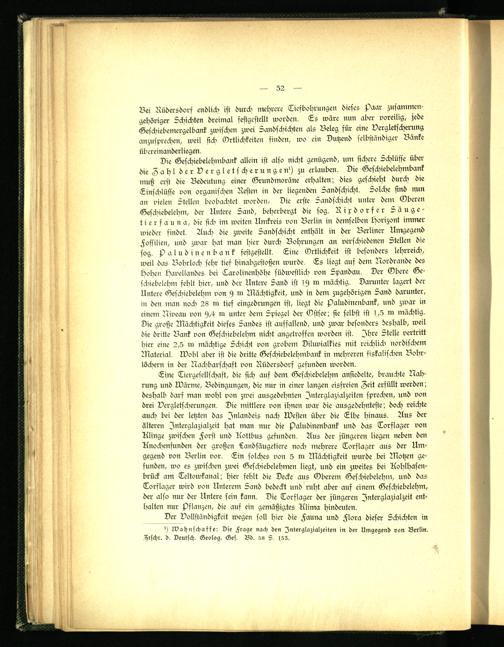Bei Rüdersdorf endlich ist durch mehrere Tiefbohrungen dieses Paar zusammengehöriger Schichten dreimal sestgestellt worden. Ls wäre nun aber voreilig, jede Geschiebemergelbank zwischen zwei Sandschichten als Beleg für eine Vergletscherung anzusprechen, weil sich Örtlichkeiten finden, wo ein Dutzend selbständiger Bänke Übereinanderliegen.