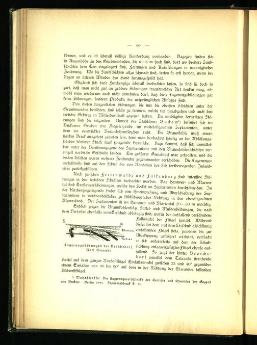 Auck zwifäxn Freie » walde und Falkenberg sind intensive Störungen in den tertiären bäuchten beobacktet worden. Das Kammer- und Biarirn- tal sind Trosionsersckeinungen, u'elcke den Sockel im Septarienton durchschneiden. In der Kiret'enziegeleigrube findet sich eine hincinpressung und Dberschiebung des Septarientons in nordnordöstlickier zu südsüdivestliä'er Richtung in den oberoligocäncn Aieeressand Der Septarienton ist im Hammer- und Aiariental 20- 30 m nuichtig.