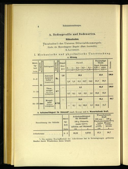 b. Aufnahmefähigkeit für Stickstoff (nach Knop) und c. Wasserhaltende Kraft.