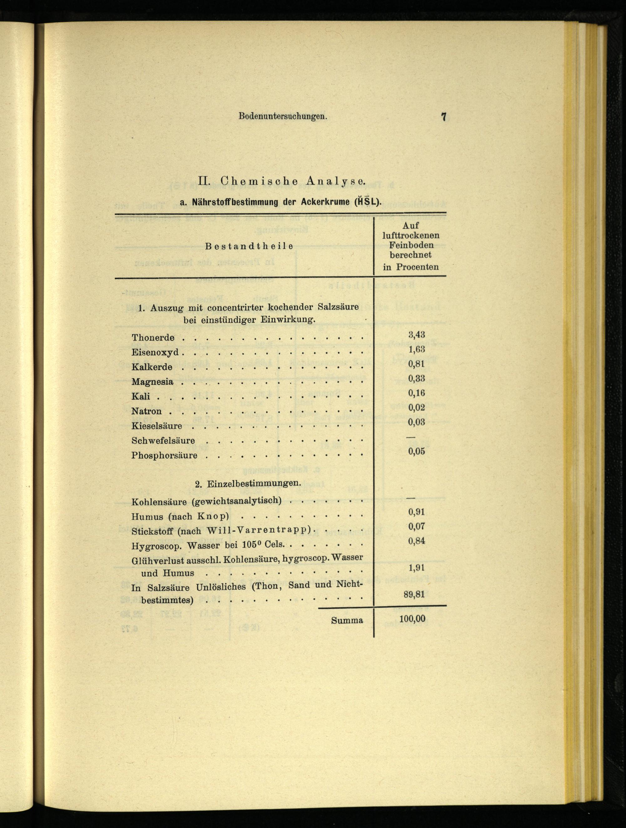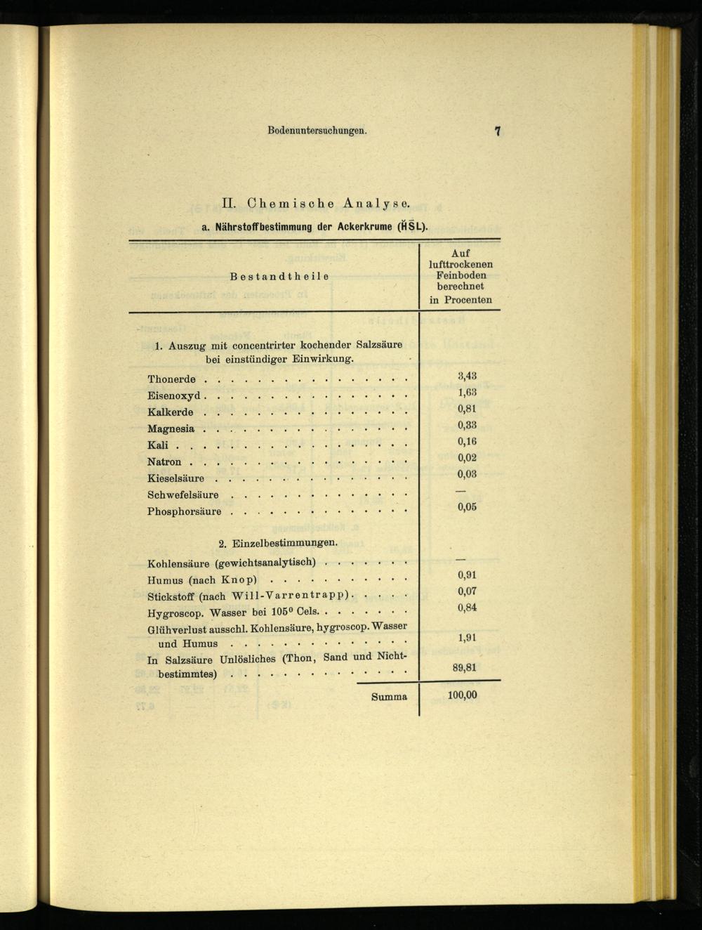 II. Chemische Analyse, a. Nährstoffbestimmung der Ackerkrume (HSL).
