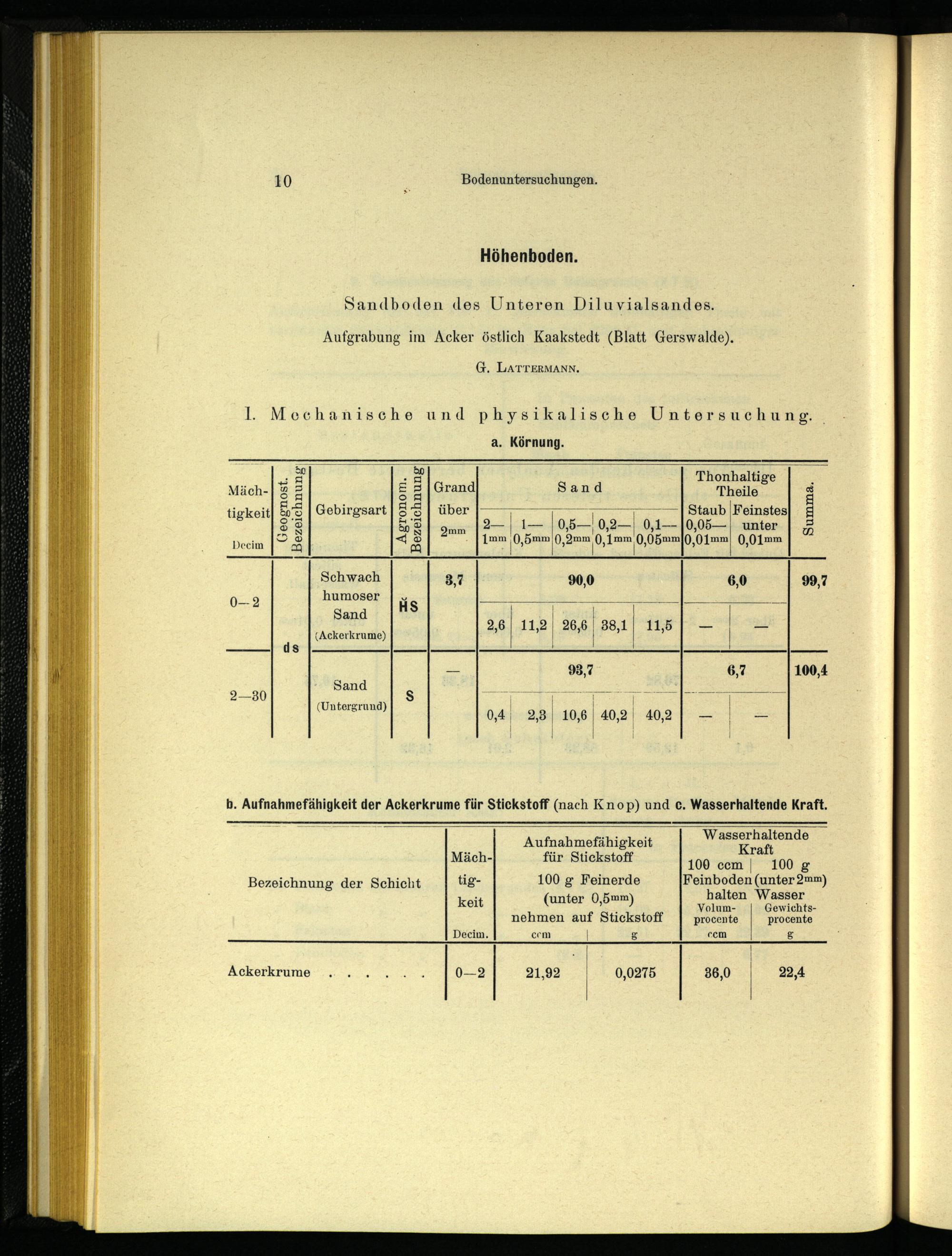 b. Aufnahmefähigkeit der Ackerkrume für Stickstoff (nach Knop) und c. Wasserhaltende Kraft.