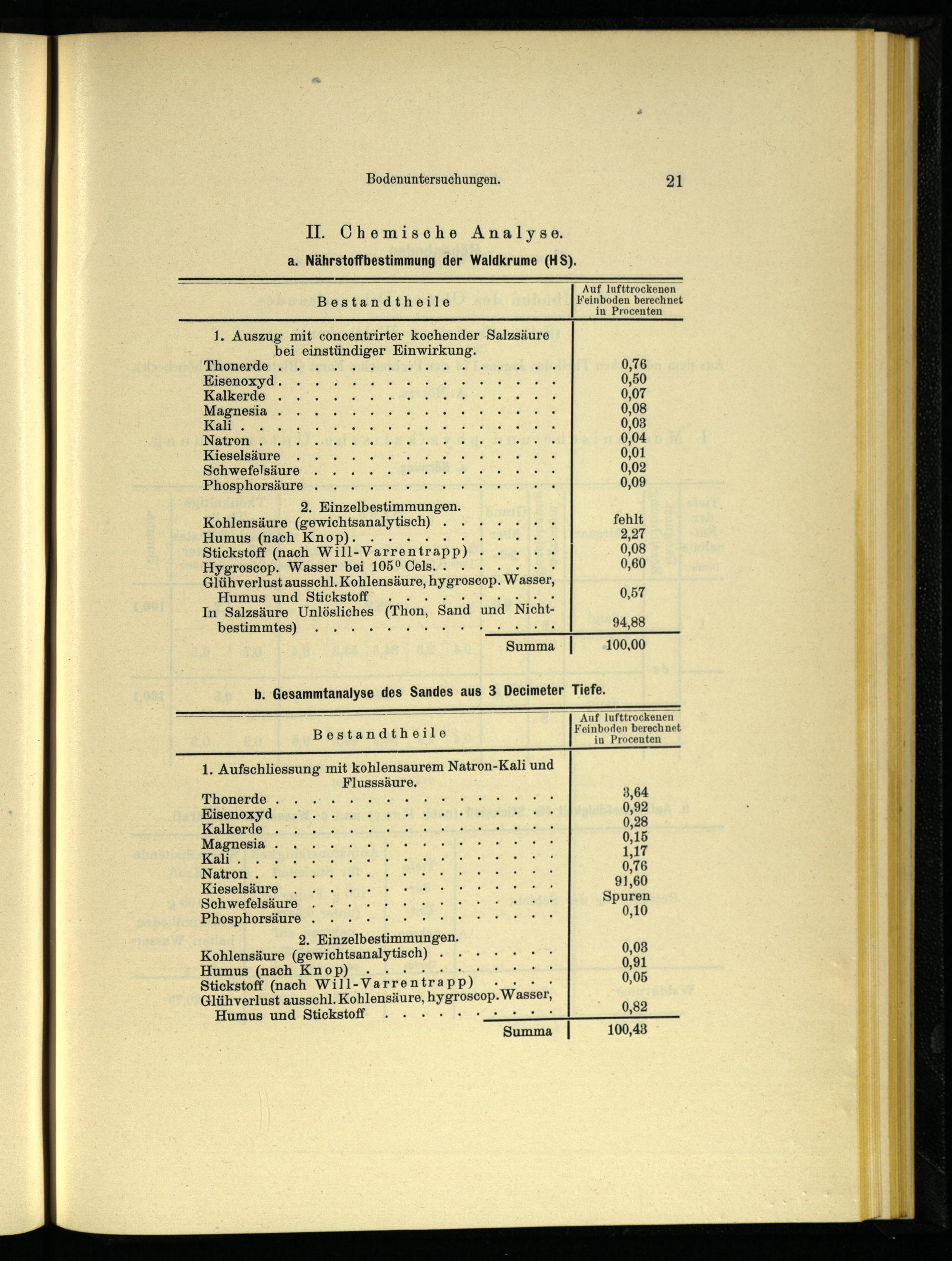 II. Chemische Analyse, a. Nährstoffbestimmung der Waldkrume (HS).