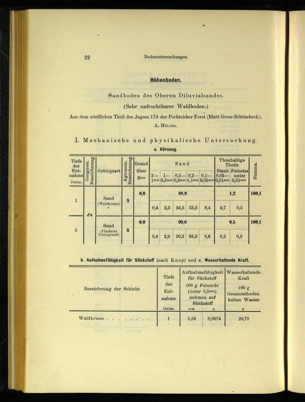 b. Aufnahmefähigkeit für Stickstoff (nach Knop) und c. Wasserhaltende Kraft.