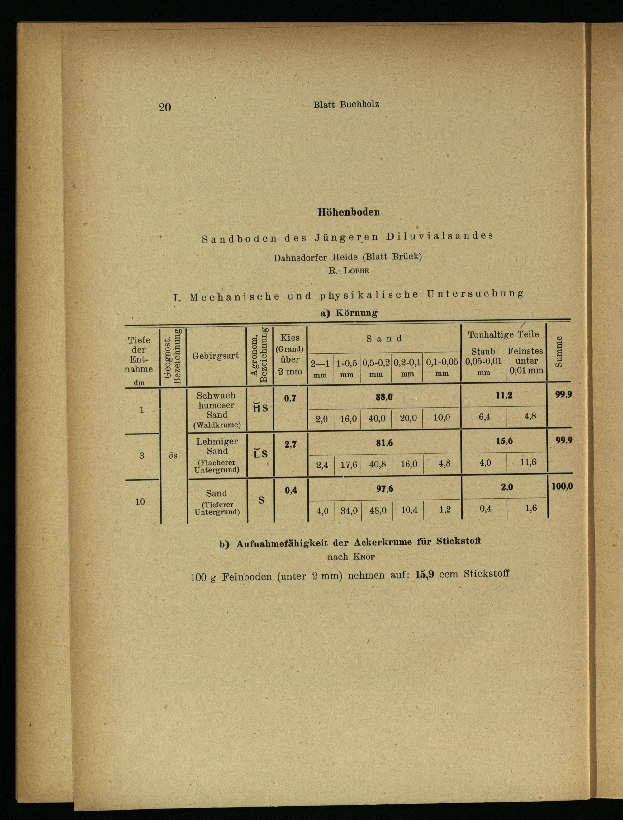 100 g Feinboden (unter 2 mm) nehmen auf: 15,9 ccm Stickstoff