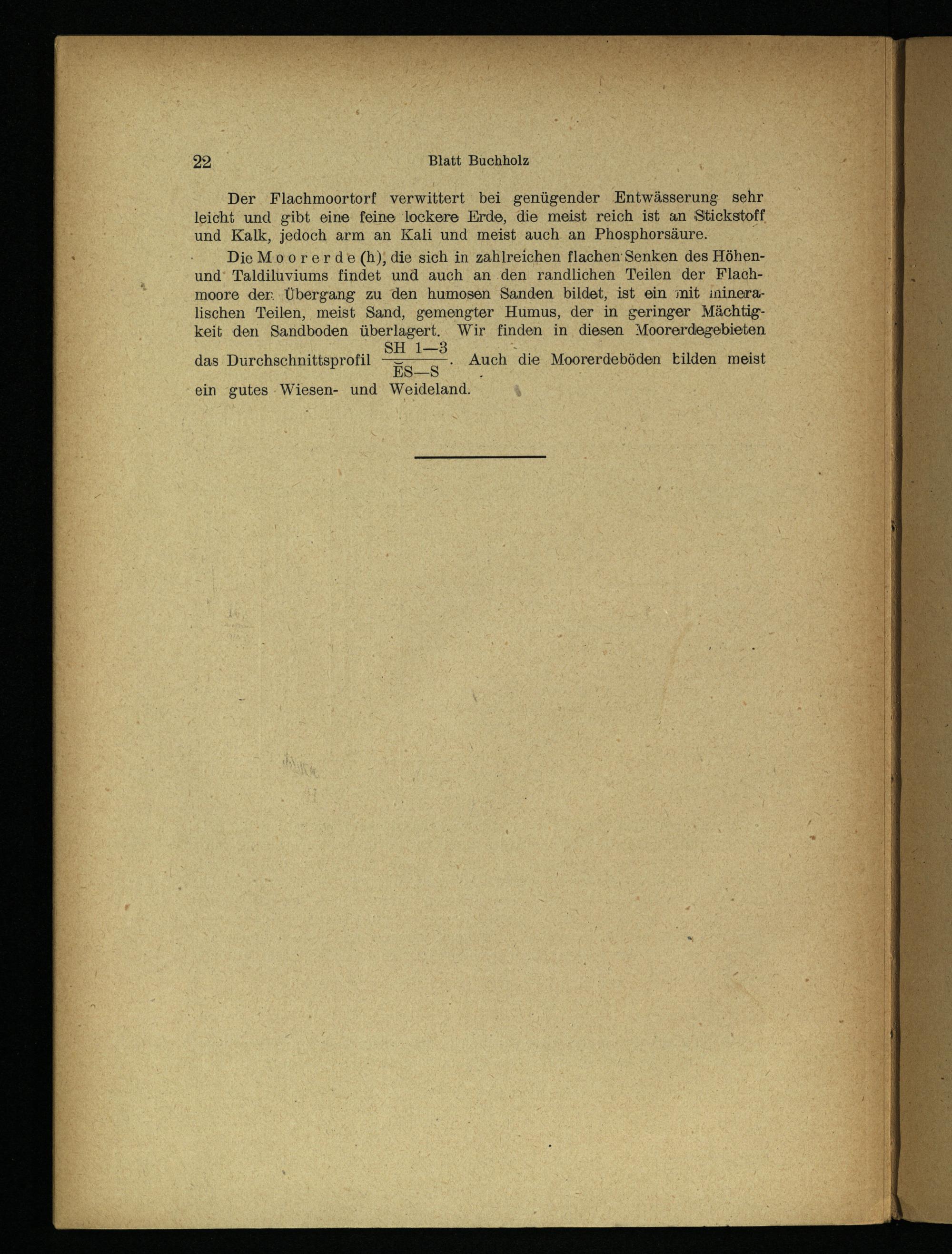 Der Flachmoortorf verwittert bei genügender Entwässerung sehr leicht und gibt eine feine lockere Erde, die meist reich ist an Stickstoff und Kalk, jedoch arm an Kali und meist auch an Phosphorsäure.