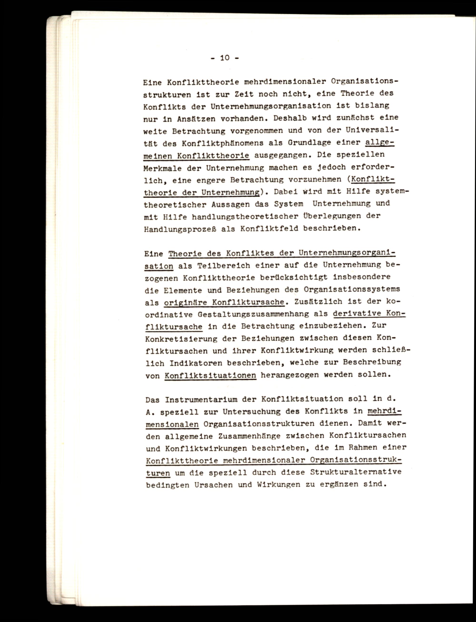 Eine Konflikttheorie mehrdimensionaler Organisationsstrukturen ist zur Zeit noch nicht, eine Theorie des Konflikts der Unternehmungsorganisation ist bislang
