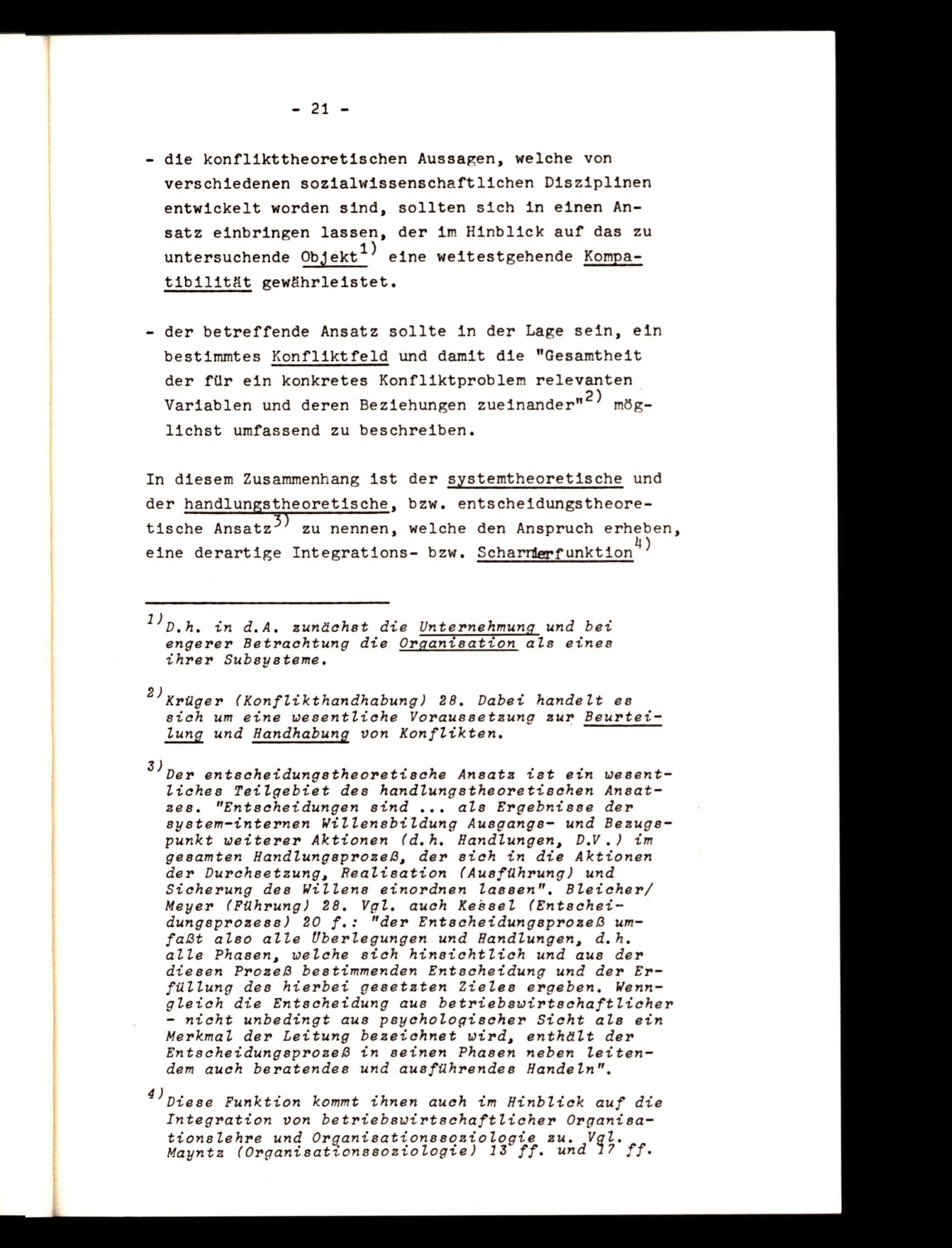 - die konflikttheoretischen Aussagen, welche von verschiedenen sozialwissenschaftlichen Disziplinen entwickelt worden sind, sollten sich in einen Ansatz einbringen lassen, der im Hinblick auf das zu untersuchende odjekt1) eine weitestgehende Kompatibilität gewährleistet.