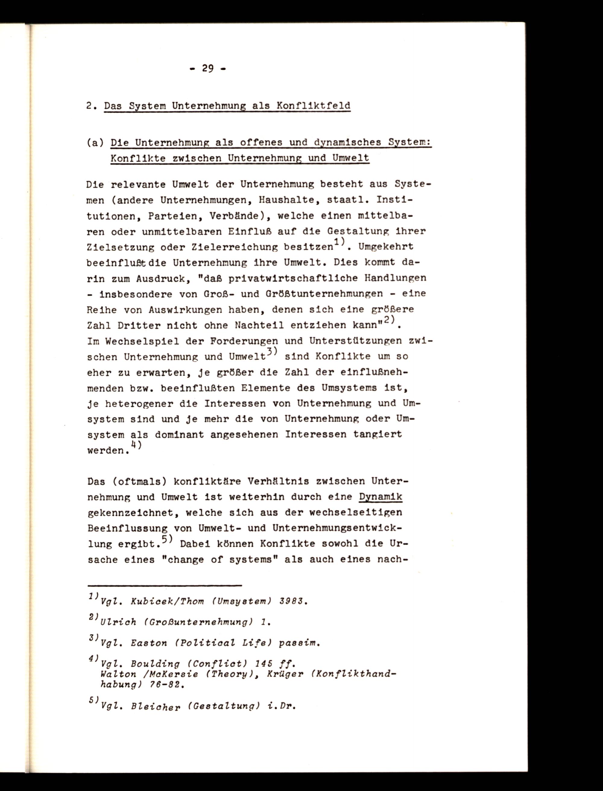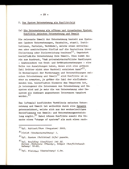 Im Wechselspiel der Forderungen und Unterstützungen zwischen Unternehmung und Umwelt?) sind Konflikte um so eher zu erwarten, je größer die Zahl der einflußnehmenden bzw. beeinflußten Elemente des Umsystems ist,