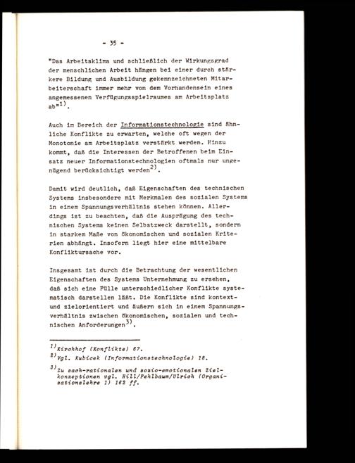 Auch im Bereich der Informationstechnologie sind ähnliche Konflikte zu erwarten, welche oft wegen der Monotonie am Arbeitsplatz verstärkt werden. Hinzu kommt, daß die Interessen der Betroffenen beim Einsatz neuer Informationstechnologien oftmals nur ungenügend berücksichtigt werden?),