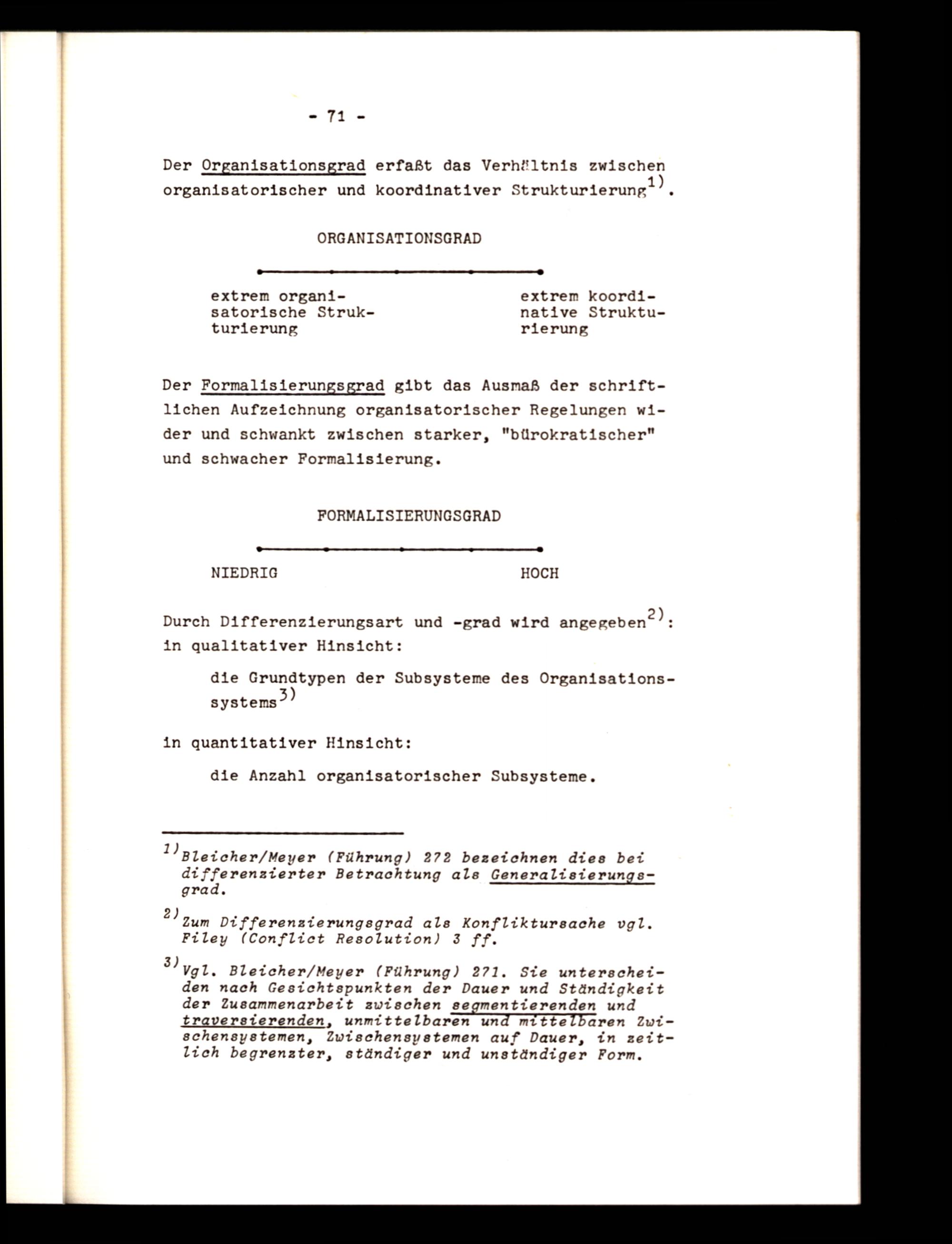Der Formalisierungsgrad gibt das Ausmaß der schriftlichen Aufzeichnung organisatorischer Regelungen wider und schwankt zwischen starker,"bürokratischer" und schwacher Formalisierung.