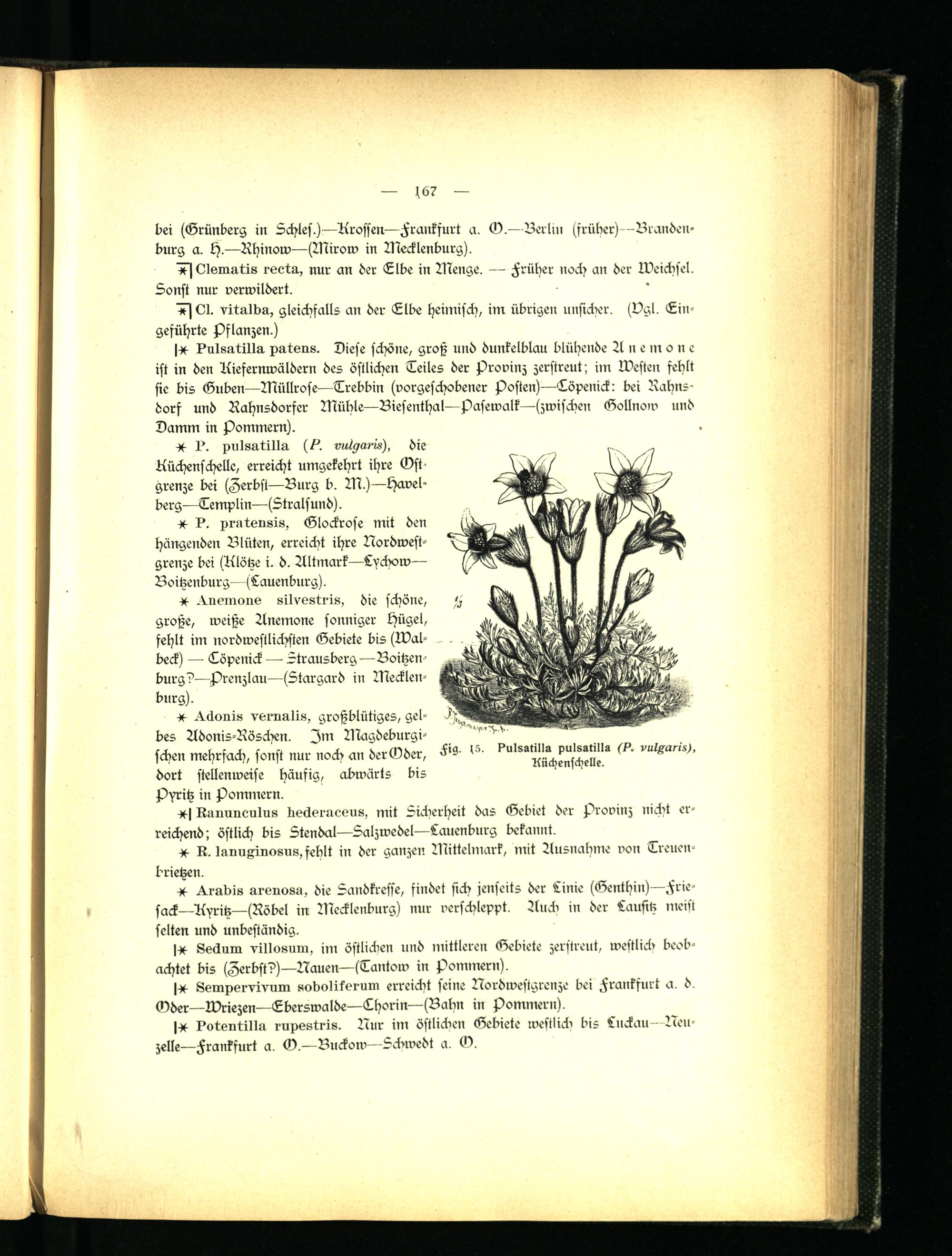 -X- 1'. pulsrrtälla (bst vu/Aarrs), die Küchenschelle, erreicht umgekehrt ihre Vst grenze bei (Zerbst—Burg b. M.)—Havel- berg—Templin—(Stralsund).