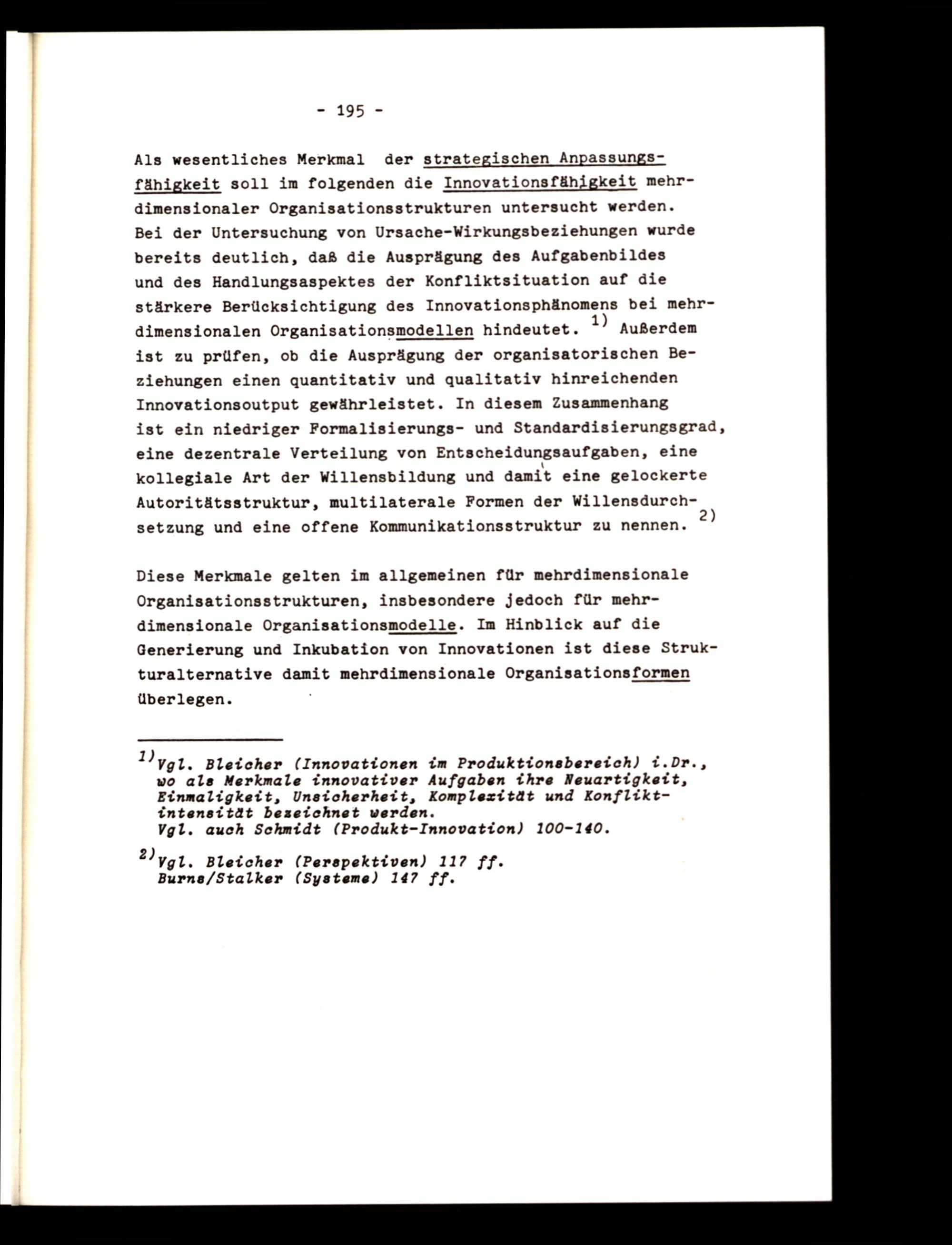 Als wesentliches Merkmal der strategischen Anpassungsfähigkeit soll im folgenden die Innovationsfähigkeit mehrdimensionaler Organisationsstrukturen untersucht werden.