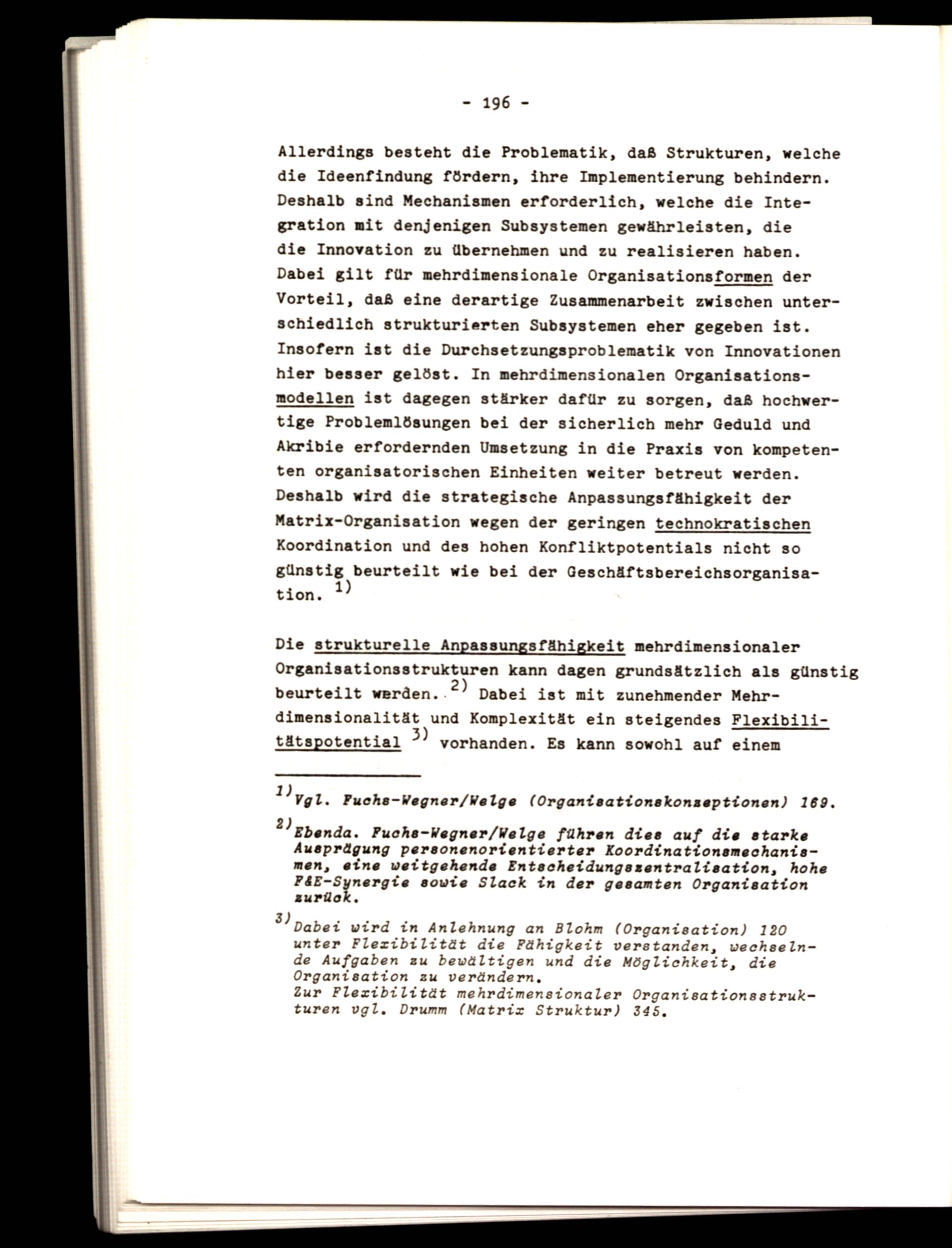 2) Ebenda. Fuchs-Wegner/Welge führen dies auf die starke Ausprägung personenorientierter Koordinationsmechanismen, eine weitgehende Entscheidungszentralisation, hohe F&E-Synergie sowie Slack in der gesamten Organisation zurück,
