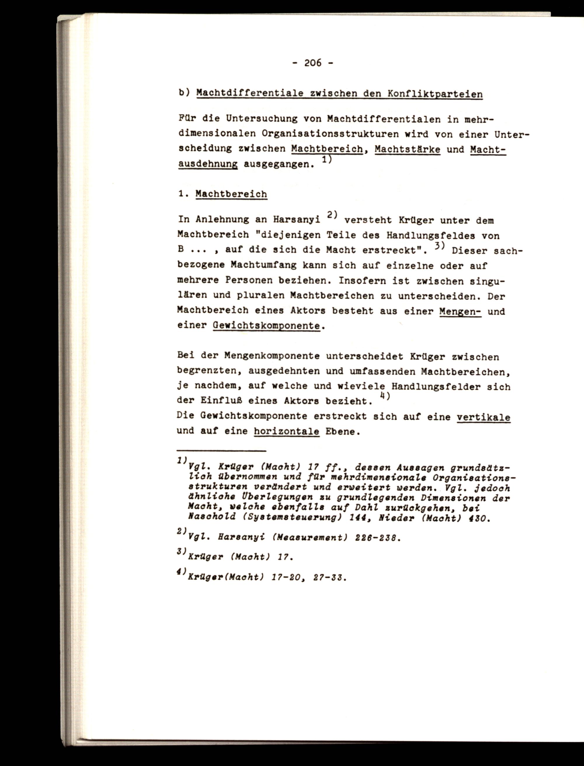 Bei der Mengenkomponente unterscheidet Krüger zwischen begrenzten, ausgedehnten und umfassenden Machtbereichen, je nachdem, auf welche und wieviele Handlungsfelder sich der Einfluß eines Aktors bezieht.