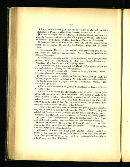 *1 Kieendis kilikorims, eine charakteristisch atlantische Pflanze, erreicht seine Grenze bei (Seehausen in der Altmark)—Brandenburg a. H. (dort fst07 von den Herren Prof, plöttner und F. Tessendorff wiederausgefunden)—putlitz in der prignitz—westliches Mecklenburg.