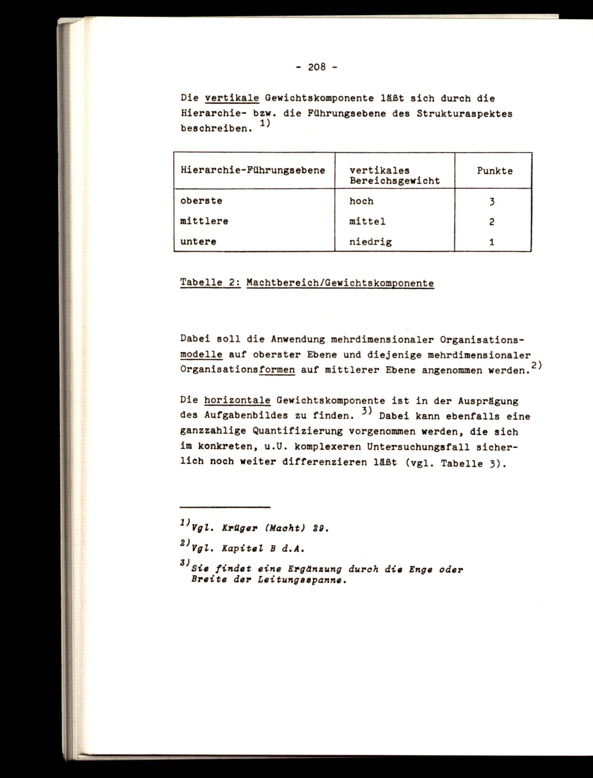 Die vertikale Gewichtskomponente läßt sich durch die Hierarchie- bzw. die Führungsebene des Strukturaspektes beschreiben.