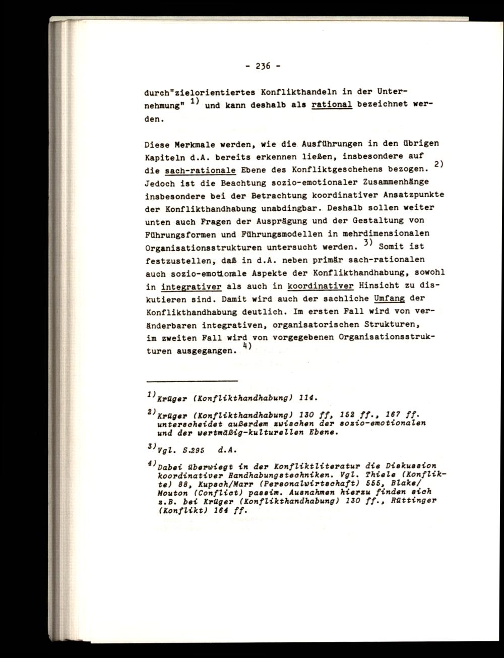 Diese Merkmale werden, wie die. Ausführungen in den übrigen Kapiteln d.A. bereits erkennen ließen, insbesondere auf die sach-rationale Ebene des Konfliktgeschehens bezogen. Jedoch ist die Beachtung sozio-emotionaler Zusammenhänge